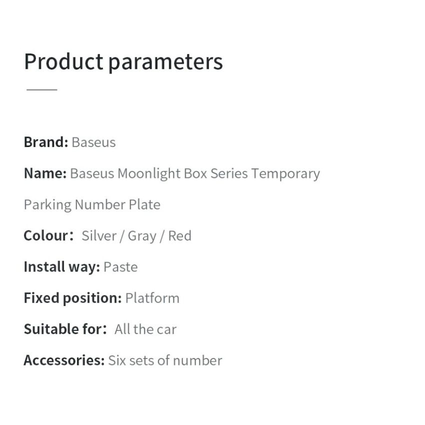 - Bảng số dạ quang dùng cho xe hơi ACNUM-B0G Baseus Moonlight Box Series Temporary Parking Number Plate Deep vừa mang đến sự tiện dụng khi dùng vừa có thể làm vật trang trí sang trọng cho chiếc xe hơi của bạn.