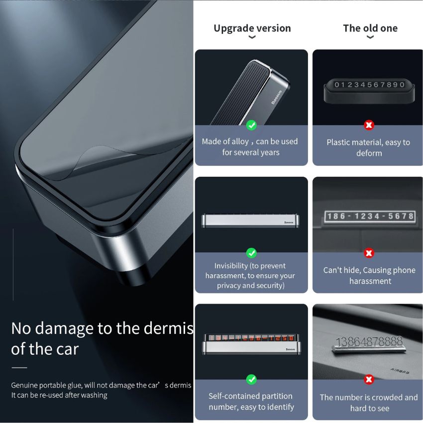 Thay vì dán giấy trên kính làm xấu chiếc xe, Bảng số điện thoại dạ quang Baseus Moonlight Box Series Temporary Parking Number Plate dùng cho xe hơi với chất liệu nhôm sẽ là một giải pháp hiệu quả giúp cho mọi người có thể liên hệ với bạn khi cần thiết và giúp cho chiếc xe của bạn trở nên sang trọng hơn.