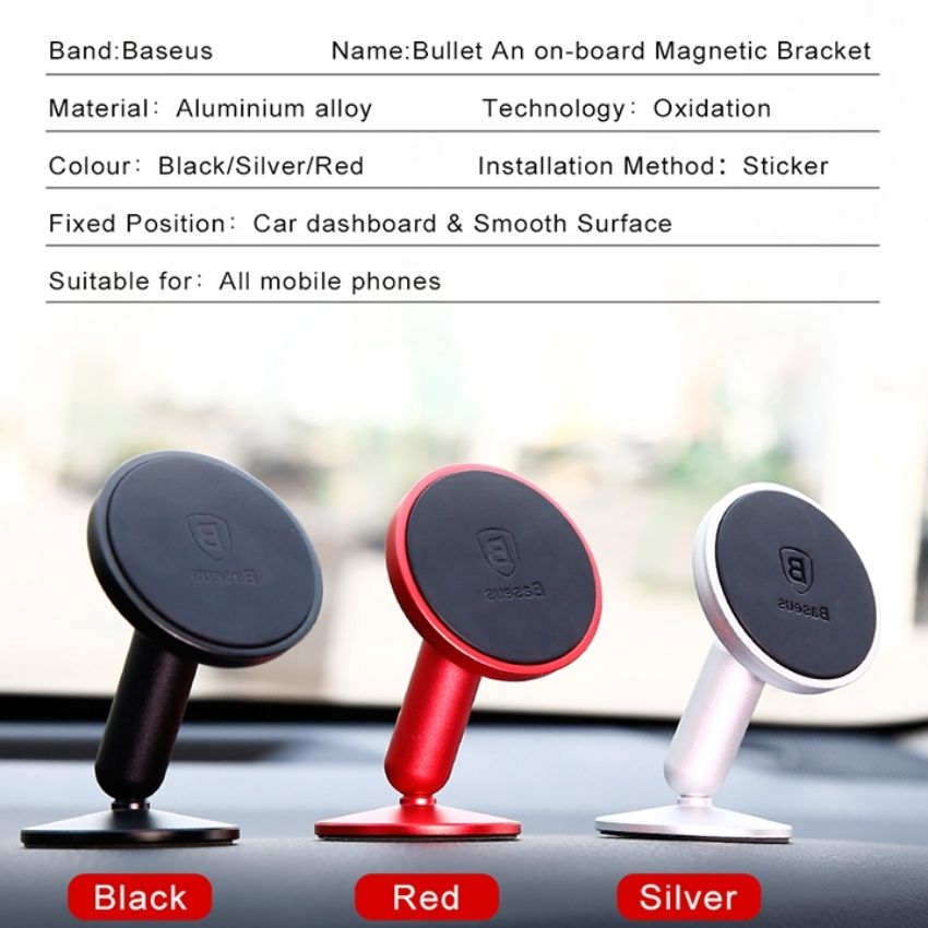 Giới thiệu sản phẩm Bộ đế giữ điện thoại nam châm Baseus Bullet Magnetic dùng cho xe hơi (Bullet An on-board Magnetic Bracket Car Mount/ Holder)