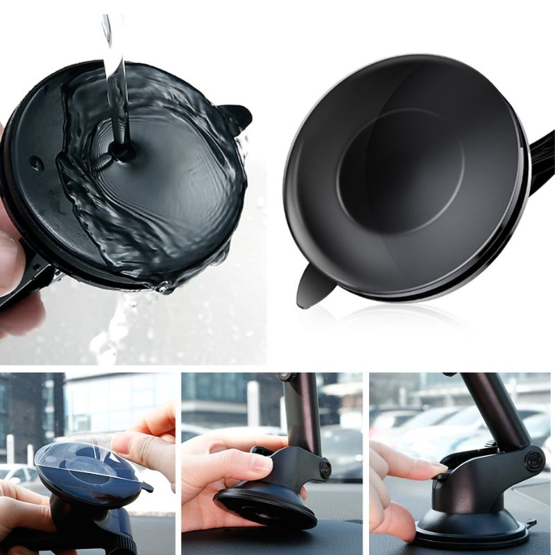 - Đế giá đỡ được thiết kế dạng chuck (hút chân không) giúp dễ dàng bám chắc vào bề mặt táp lô xe hoặc kính. Khi không sử dụng có thể tháo ra dễ dàng, không làm dơ bẩn xe.