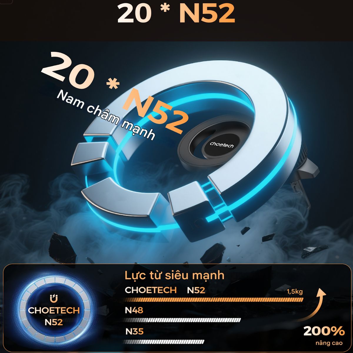 Hít nam châm siêu mạnh, giữ điện thoại chắc chắn