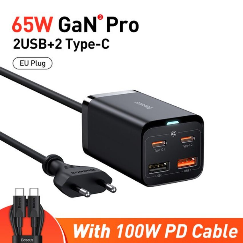 Hình Ảnh Bộ sạc nhanh Baseus GaN3 Pro Desktop Fast Charger 2U+2C 100W EU cho laptop, điện thoại