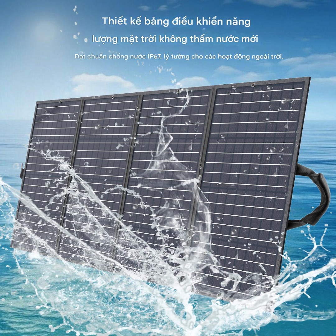 Về thiết kế, Choetech SC010 có khả năng gấp gọn, dễ dàng mang theo khi di chuyển. Khi gấp lại, kích thước nhỏ gọn giúp tiết kiệm không gian lưu trữ, còn khi mở ra, bề mặt pin lớn giúp tối ưu khả năng thu năng lượng mặt trời. Chất liệu vải PVC Oxford cao cấp không chỉ bền bỉ mà còn mang lại khả năng chống nước chuẩn IPX65, giúp sản phẩm hoạt động ổn định trong nhiều điều kiện thời tiết khác nhau, phù hợp cho các hoạt động ngoài trời dài ngày.