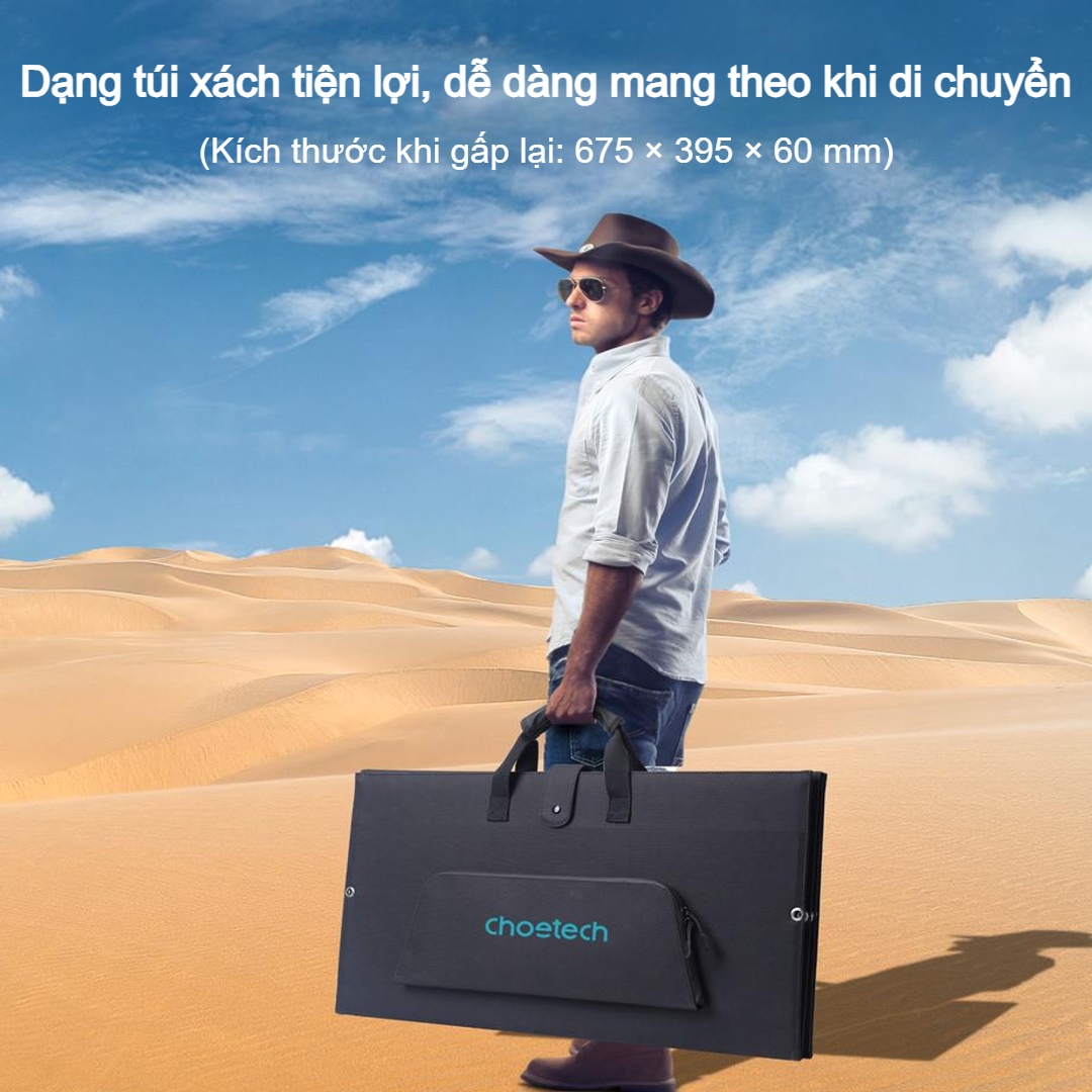Bộ sạc năng lượng mặt trời di động Choetech SC010 công suất 160W là giải pháp cung cấp điện lý tưởng cho những ai yêu thích du lịch, dã ngoại, cắm trại, làm việc ngoài trời hoặc cần nguồn điện dự phòng ổn định trong những tình huống khẩn cấp. Sản phẩm chính hãng từ thương hiệu Choetech uy tín, nổi bật với thiết kế gấp gọn thông minh, hiệu suất cao và độ bền vượt trội.
