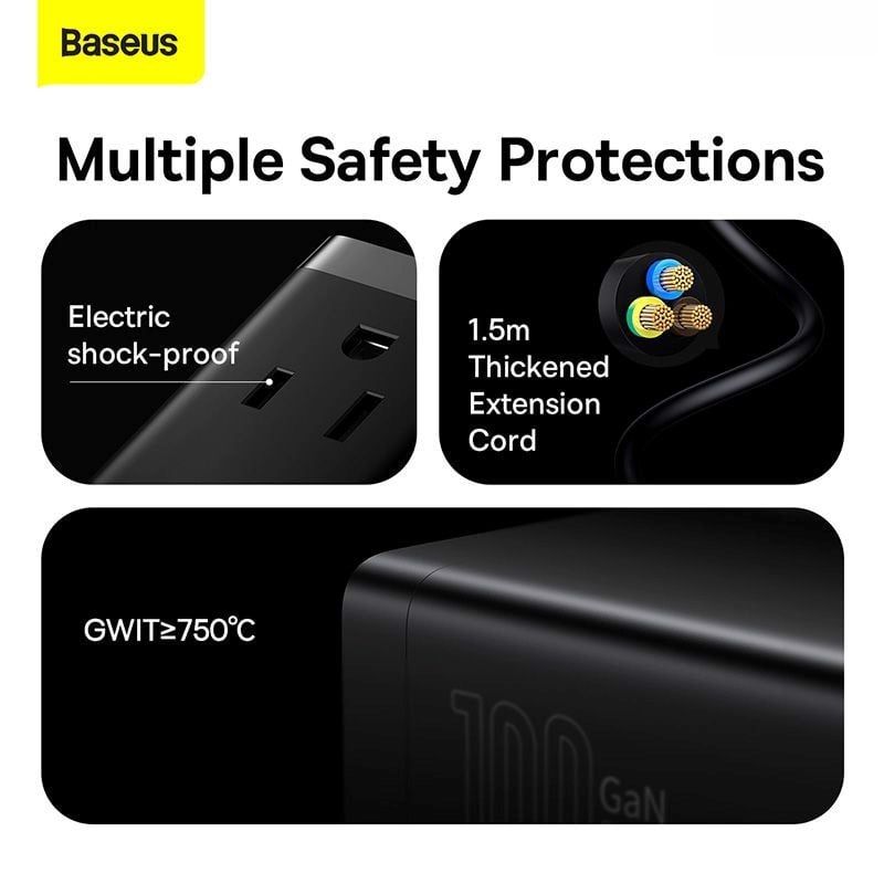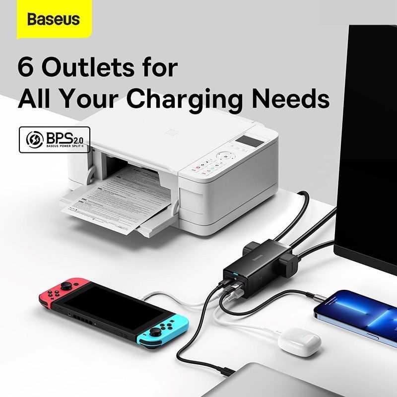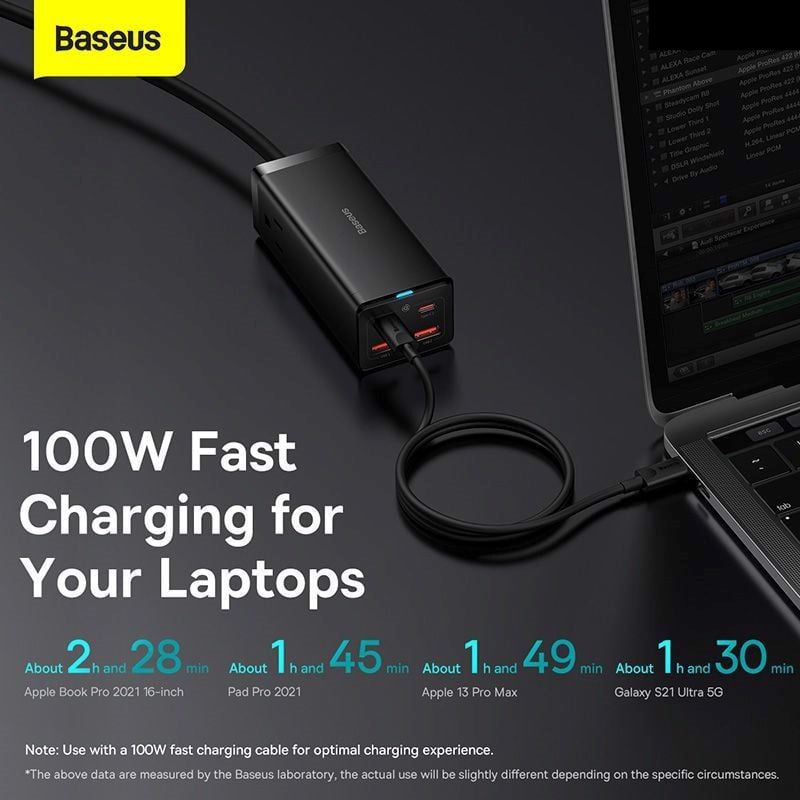 Giới thiệu Bộ Sạc Nhanh Baseus 100W GaN3 Pro Desktop Powerstrip 6 in 1 AC 100V-220V (2AC+2U+2C) (Type-C To Type-C 100W(20V/5A))