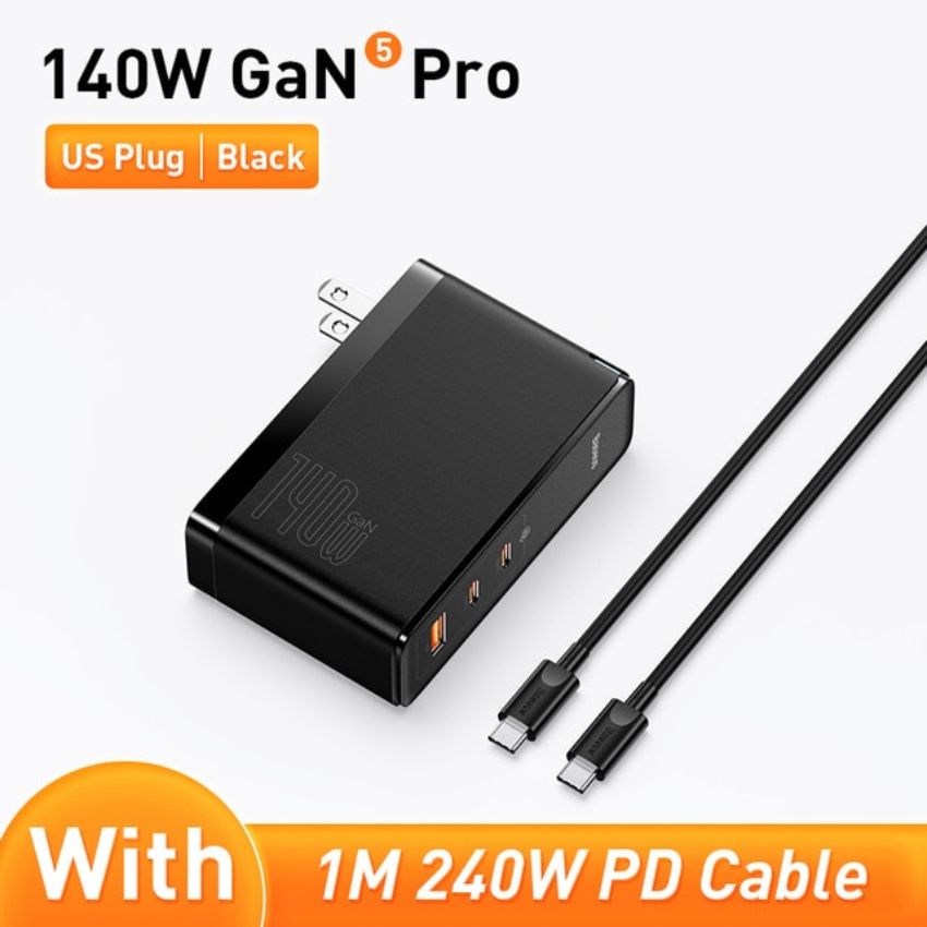 Bộ Sạc Nhanh Baseus GaN 5 Pro Fast Charger 140W (kèm cáp C to C , Type C*2 + USB, PD/ QC4.0/ QC3.0/ AFC/ FCP Quick-Charger)