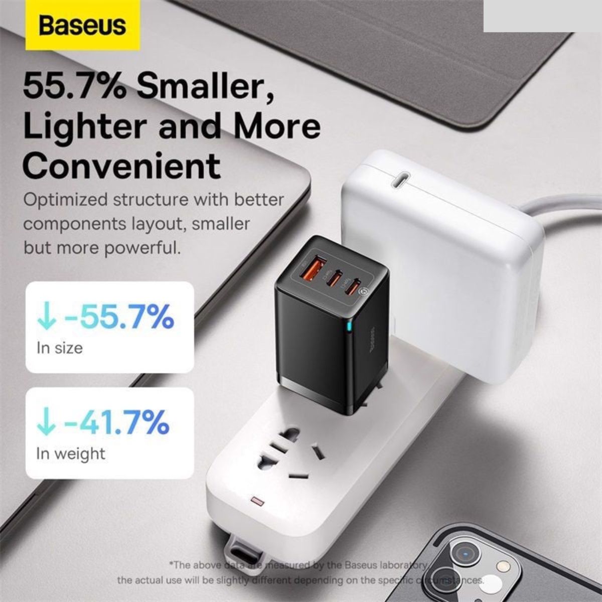 Sạc đa cổng Baseus GaN5 Pro Fast Charger 65W với thiết kế siêu nhỏ gọn, tiện lợi, được hỗ trợ bởi công nghệ Gallium Nitride (GaN) mới nhất với công suất 65W cung cấp khả năng sạc nhanh, sạc đa cổng nhiều thiết bị một lúc. GaN5 hỗ trợ sạc nhanh 3 cổng, công nghệ sạc nhanh PD lên đến 65W.