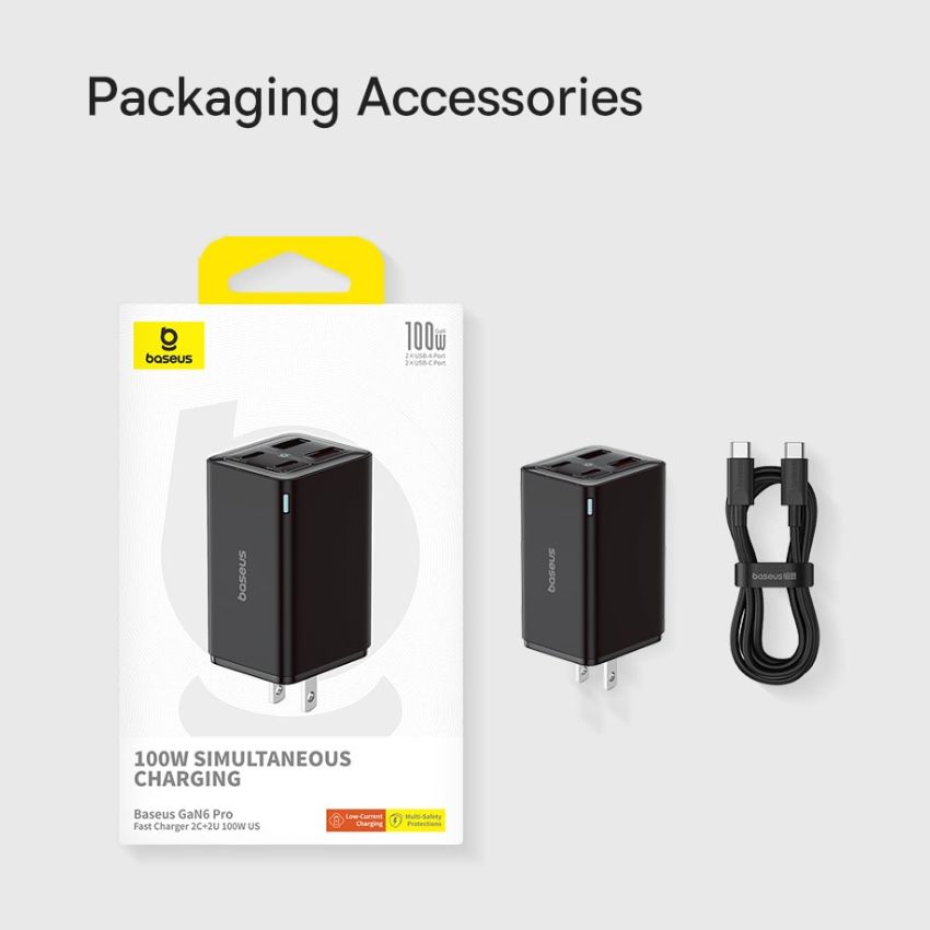 Hình ảnh Bộ sạc nhanh 100W Baseus GaN6 Pro Fast Charger 2C+2U (Kèm cáp C to C 20V/5A 100W, 1m)