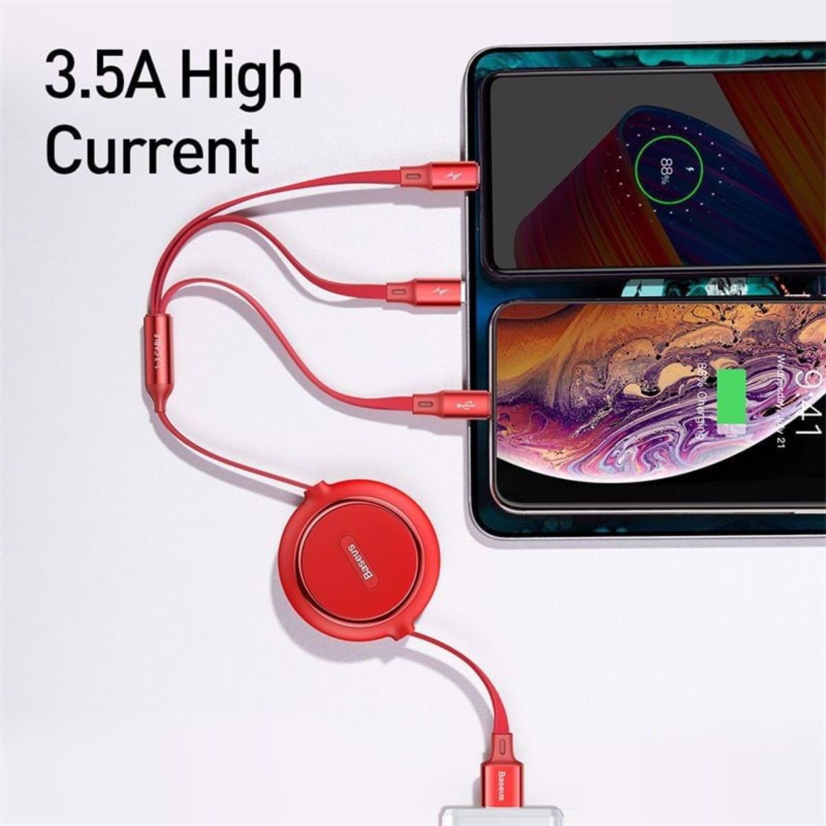 Tính năng cơ bản Cáp sạc dây rút 3 in 1 Baseus Golden Loop Elastic (3.5A, Type C/ Lightning/ Micro USB, Adjustable, Fast Charge Cable) CAMLT-JH