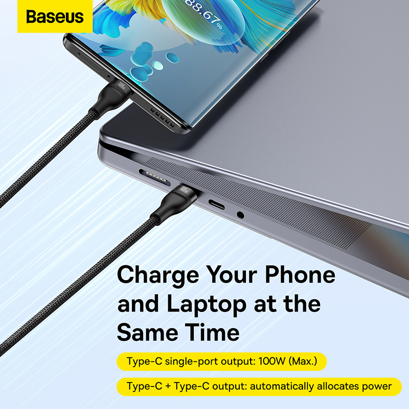 Giới thiệu sản phẩm Cáp sạc đa năng 2 đầu Baseus Flash Series Ⅱ One-for-Two Fast Charging Cable Type-C to C+C 100W