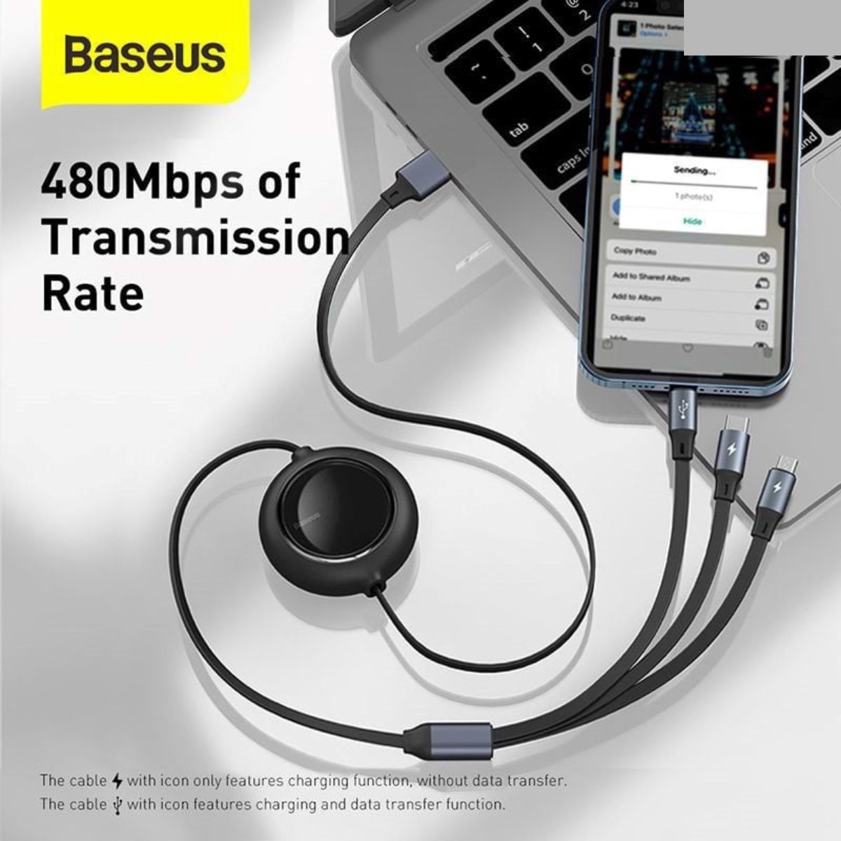 - Cáp sạc dây rút 3 đầu thế hệ mới Baseus Bright Mirror 3 in 1 tích hợp 3 đầu kết nối phổ thông nhất hiện nay gồm Type C, Micro USSB và Lightning dùng sạc để sạc pin cho iPhone/ iPad và smartphone/ tablet Android và hầu hết các thiết bị số hiện nay.