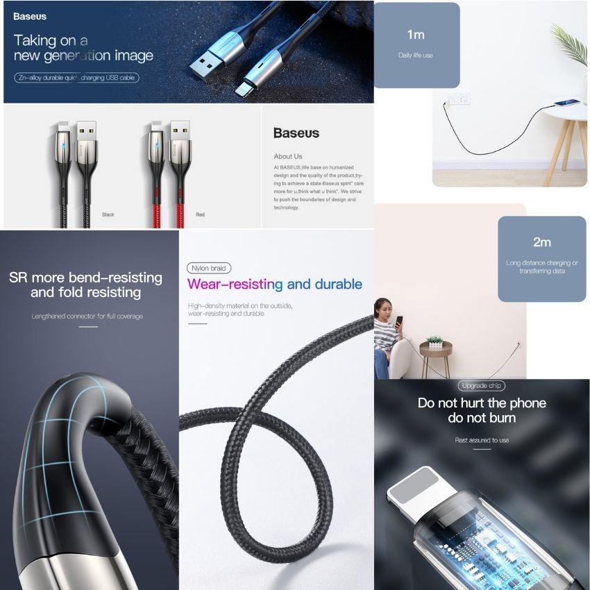 - Thiết kế cực đẹp và sang trọng, dây cáp được làm bằng sợi nylon carbon siêu bền. Mọi chi tiết được hoàn thiện ở mức cao cấp.