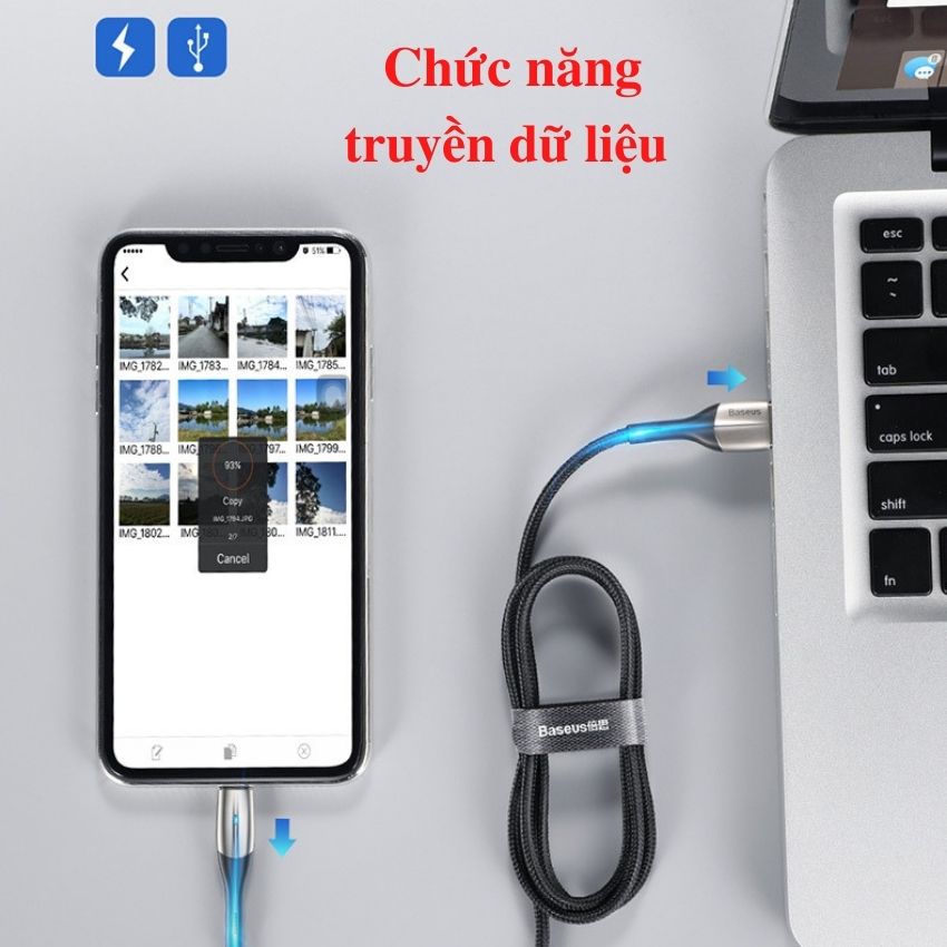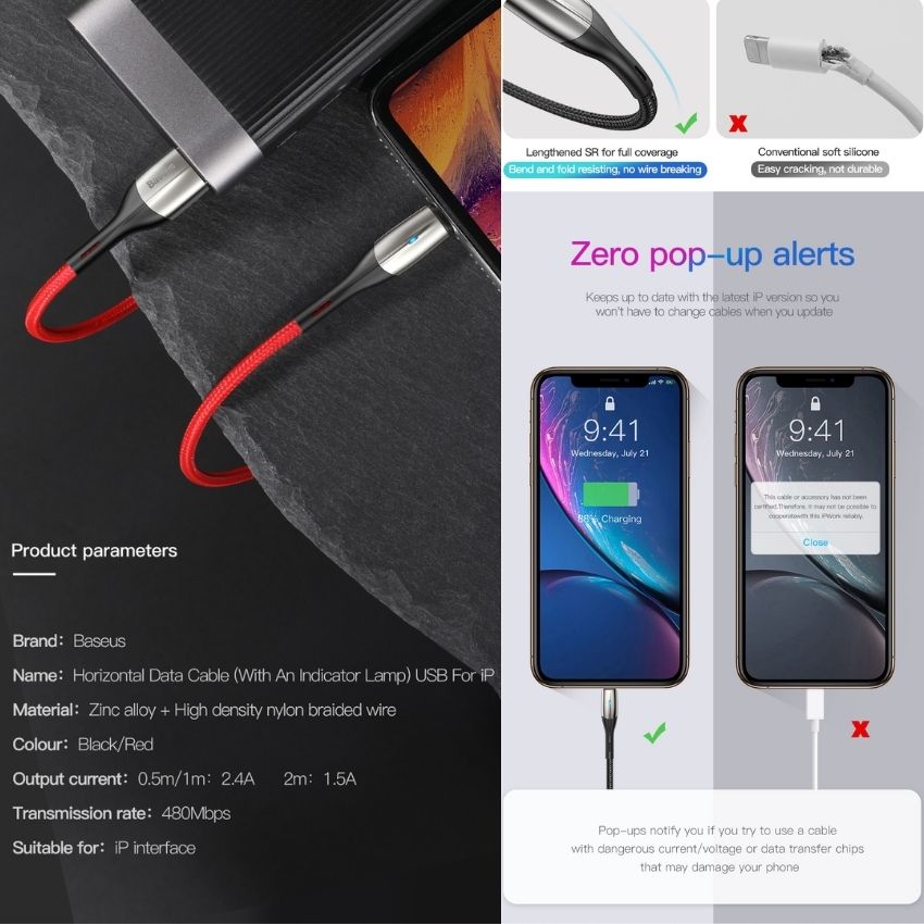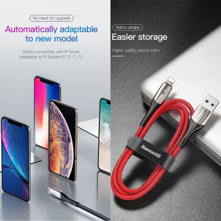 - Cáp sạc nhanh và truyền dữ liệu tốc độ cao cho Iphone CALSP Baseus Horizontal Data cable (2.4A, Indicator Lamp, Fast Charging, USB to Lightning) dùng sạc pin và đồng bộ dữ liệu tốc độ cao cho các thiết bị của Apple như iPhone/ iPad/ iPod ... qua cổng Lightning. Tương thích tốt iOS mọi phiên bản, không báo lỗi phụ kiện không tương thích.