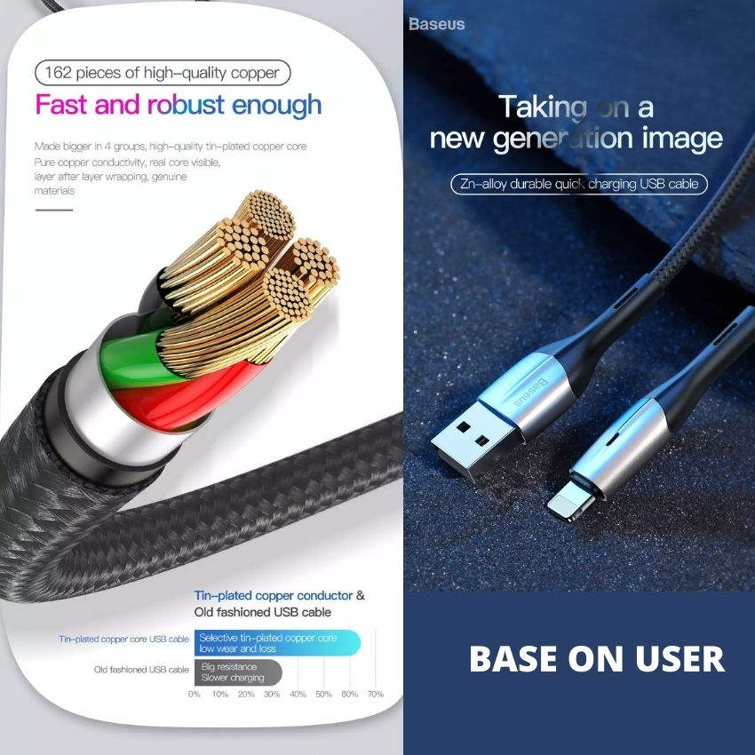 - Hỗ trợ dòng lên đến 2.4 A, cho tốc độ sạc nhanh hơn 30% - 40% so với các loại cáp thông thường.