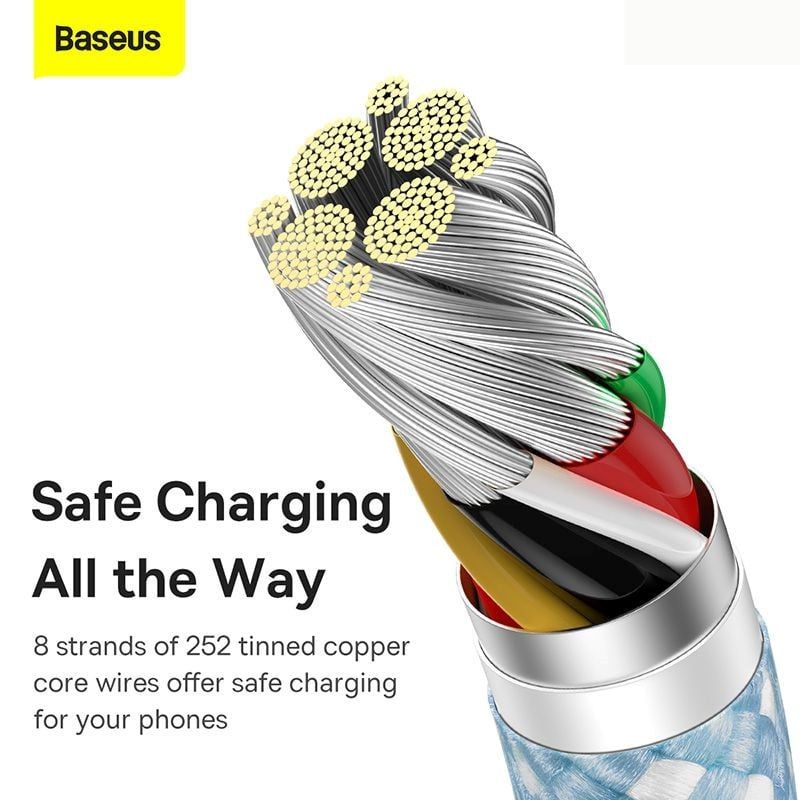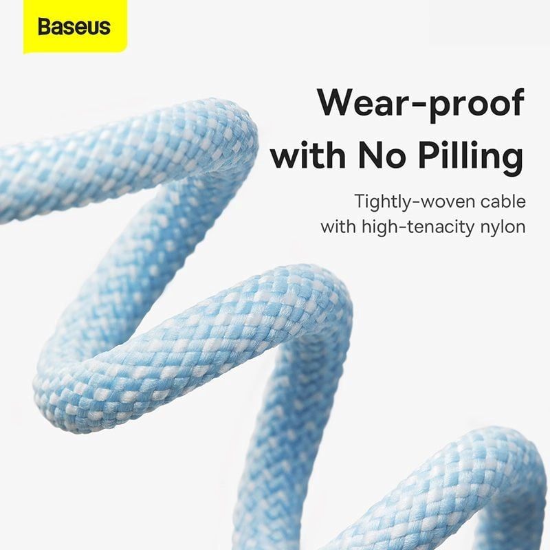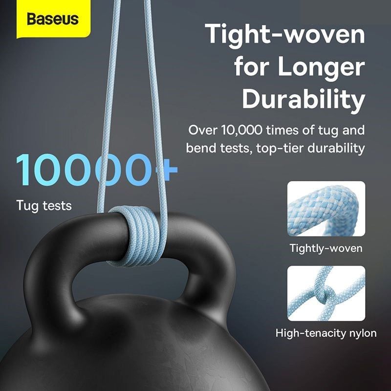 - Baseus Dynamic Series với dây cáp có lớp vỏ bảo vệ được bện từ nylon dù vô cùng bền chắc. Cụ thể nó có khả năng chống gập, gãy trong các tác động lực xoắn và kéo mạnh đến tận 10000 lần. Hơn nữa, ứng dụng của nó còn mang đến khả năng chống rối hiệu quả. Dù bạn có thả nó ở trong túi xách hay túi quần, bạn sẽ không mất nhiều thời gian để tháo ra và sử dụng.