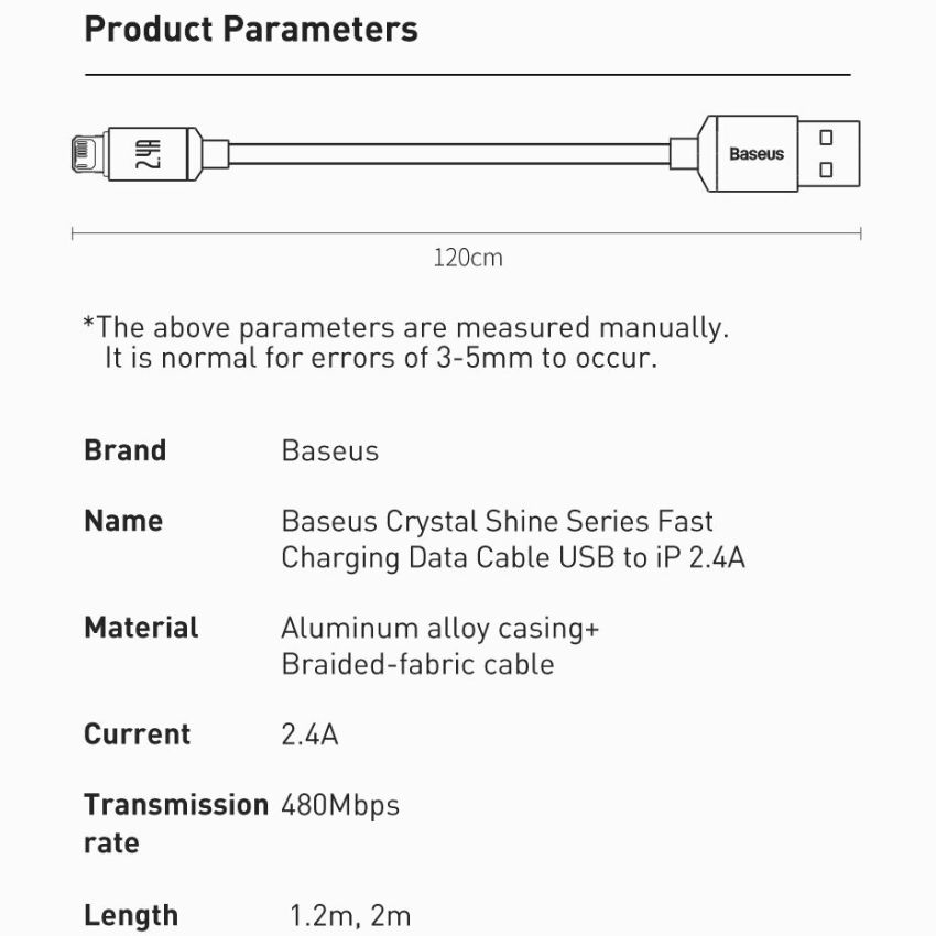 Tính năng cơ bản Cáp sạc nhanh truyền dữ liệu USB sang Lighning CAJY000003 Baseus Crystal Shine Series Fast Charging Data Cable