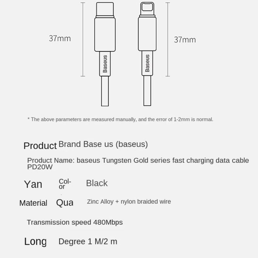 - Cáp sạc nhanh truyền dữ liệu Type C to Lightning 20W Baseus Tungsten Gold Series Fast Charging Data Cable (CATLWJ) là thế hệ cáp sạc C to Lightning mới nhất của Baseus. Sản phẩm được thiết kế chuyên dụng cho dòng iPhone 12 mà Apple vừa trình làng. Đảm bảo tốc độ sạc nhanh, độ ổn định cao và tương thích tuyệt đối với dòng iPhone 12.