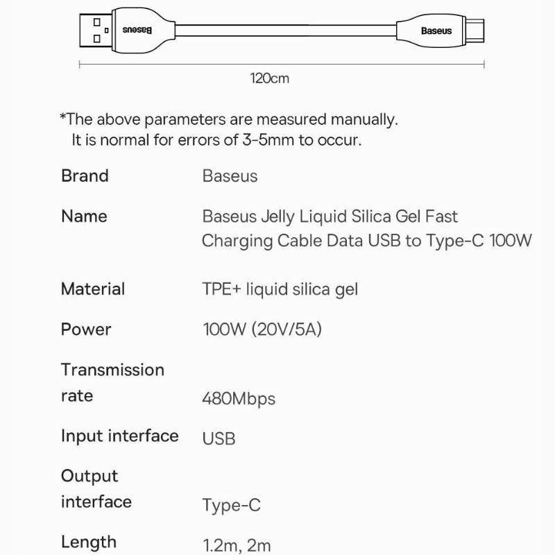 - Cáp sạc nhanh Baseus Jelly Liquid Silica Gel được thiết kế chuyên dùng để sạc pin và đồng bộ dữ liệu tốc độ cao cho các smartphone & tablet Type C như Samsung S8/9, Note 7/8/9, Xiaomi, Huawei, Oppo, Apple iPad Pro 2018 11 inch/ 12.9 inch...