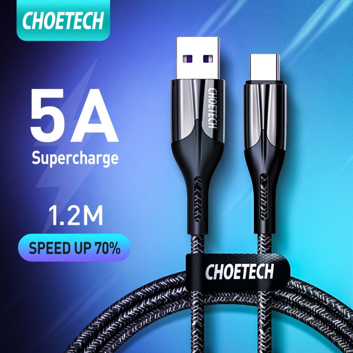 Hình ảnh Cáp sạc nhanh Usb To Type C 5A Choetech AC0013 dài 1.2M (Hàng chính hãng)