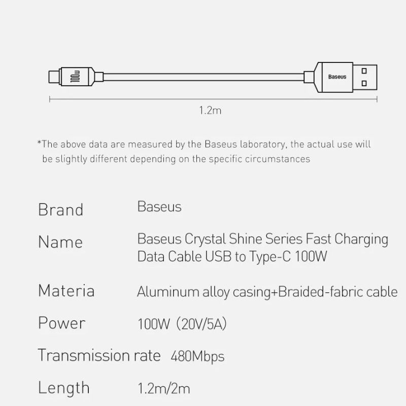 - Cáp Sạc Nhanh Baseus Crystal Shine Series Data PD Fast Charging QC 4.0 chính là một phụ kiện tuyệt vời cho phép bạn kết nối các thiết bị, đồng aabộ dữ liệu nhanh chóng cùng với khả năng sạc nhanh công suất 100W, an toàn với chứng chỉ USB-IF