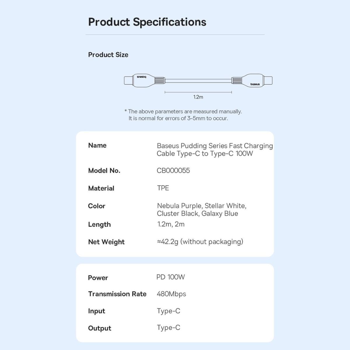 - Nếu bạn đang tìm kiếm một chiếc cáp sạc vừa bền bỉ, vừa hỗ trợ sạc nhanh cho các thiết bị sử dụng cổng Type-C, thì Baseus Pudding Series Type-C to Type-C 100W chính là lựa chọn lý tưởng dành cho bạn.