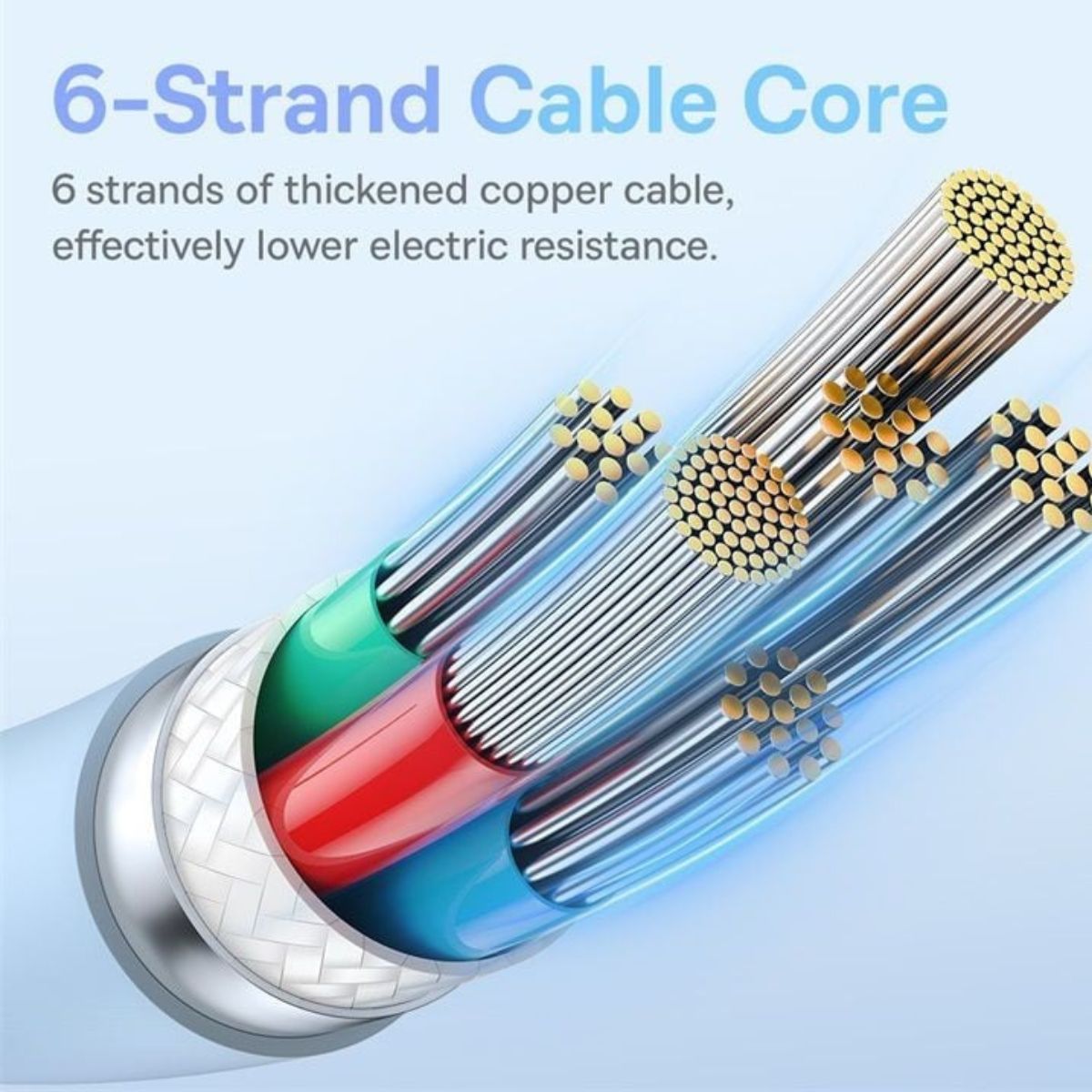 - Cáp được thiết kế với lớp vỏ chống rối, chống đứt gãy, giúp hạn chế tình trạng rối dây hay gãy ngầm trong quá trình sử dụng. Vật liệu cao cấp mang đến cảm giác chắc chắn và độ bền vượt trội, đảm bảo tuổi thọ dài lâu ngay cả khi sử dụng hàng ngày.
