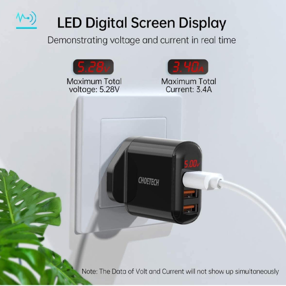 Giới thiệu Củ sạc 3 cổng USB A có màn hình hiển thị điện áp Choetech Q5009 (Hàng chính hãng)