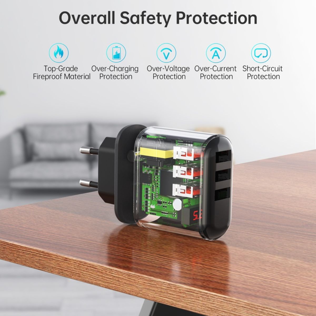 – Với 3 cổng USB, bao gồm 3 mức điện áp khác nhau với dòng sạc lên đến 3.4A, cho phép bạn dễ dàng sạc cùng lúc cho 3 thiết bị điện tử với tốc độ sạc cực nhanh, chỉ trong vòng “một nốt nhạc”. Hơn nữa, mỗi cổng giao diện của cốc sạc đều được trau chuốt kỹ lưỡng với độ hoàn thiện cao, đảm bảo sạc nhanh và ổn định cho thiết bị của bạn.