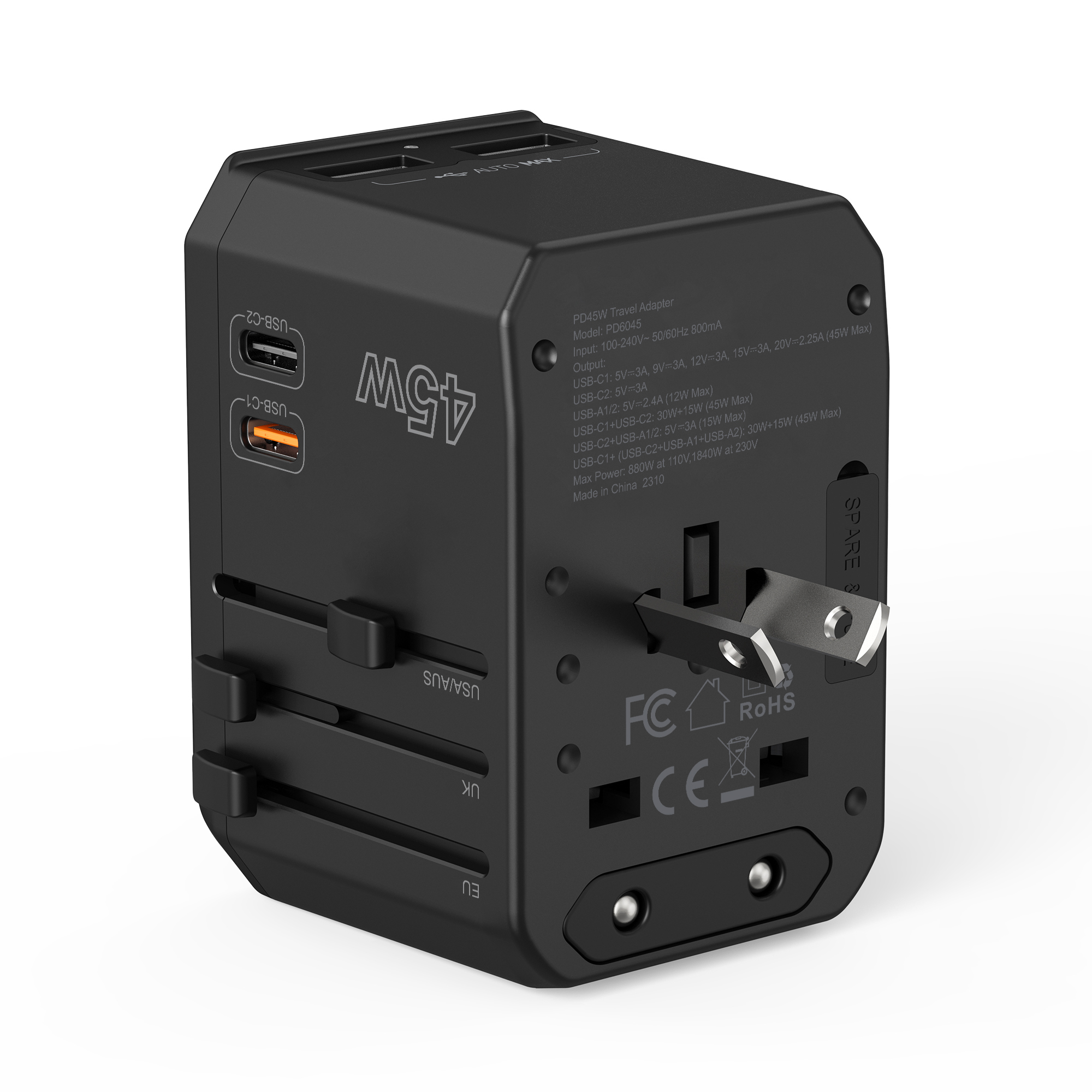 – Có thiết kế nhỏ gọn với 2 cổng USB-C và 2 cổng USB-A có thể cung cấp nguồn điện và sạc cho đến 5 thiết bị cùng một lúc, bất kể bạn đang ở đâu không còn lo lắng về việc thiếu sạc nữa. Củ sạc là sạc nhanh du lịch đa năng, tích hợp 4 chuẩn sạc quốc tế UK/US/EU/AU sử dụng hơn 150 quốc gia. Hỗ trợ nhiều mức điện áp ngỏ vào khác nhau (từ 100V cho đến 250V Ac), tần số 50Hz/ 60Hz , bạn có thể yên tâm mang bộ sạc này khi đi du lịch hoặc công tác đến bất kỳ quốc gia nào thì vẫn có thể sử dụng bình thường mà không phải dùng đến bộ chuyển đổi hoặc biến áp nào khác .