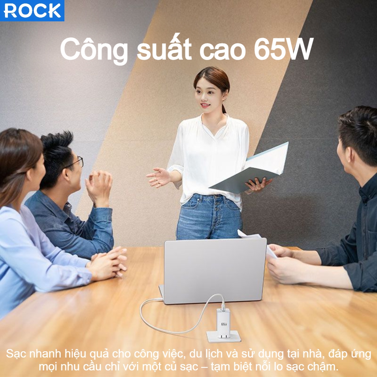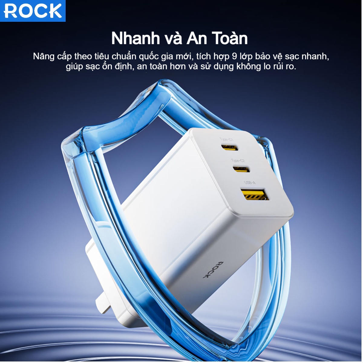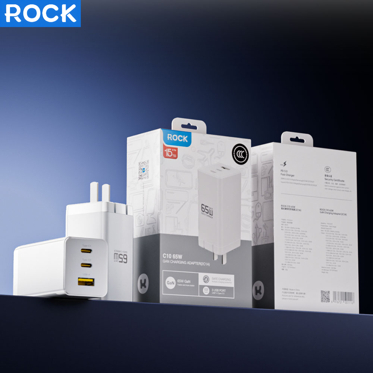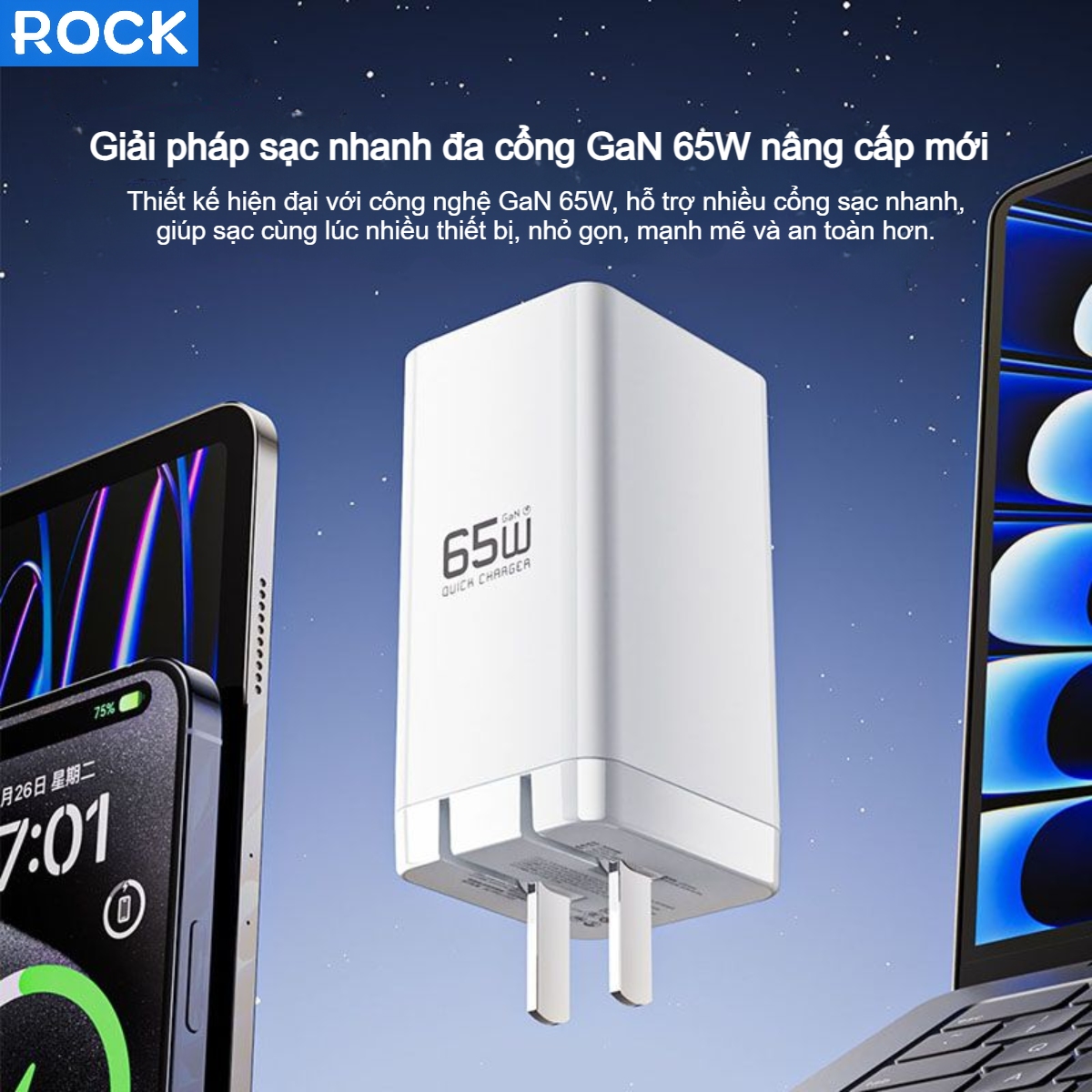 Củ Sạc Nhanh 3 Cổng ROCK C10 GaN 65W 2C+ 1U là giải pháp sạc toàn diện dành cho người dùng hiện đại, đáp ứng hoàn hảo nhu cầu sạc nhanh cho công việc, học tập, du lịch và sử dụng hằng ngày. Với thiết kế nhỏ gọn nhưng công suất mạnh mẽ, sản phẩm giúp bạn mang theo chỉ một củ sạc duy nhất để sạc nhiều thiết bị khác nhau một cách tiện lợi và an toàn.