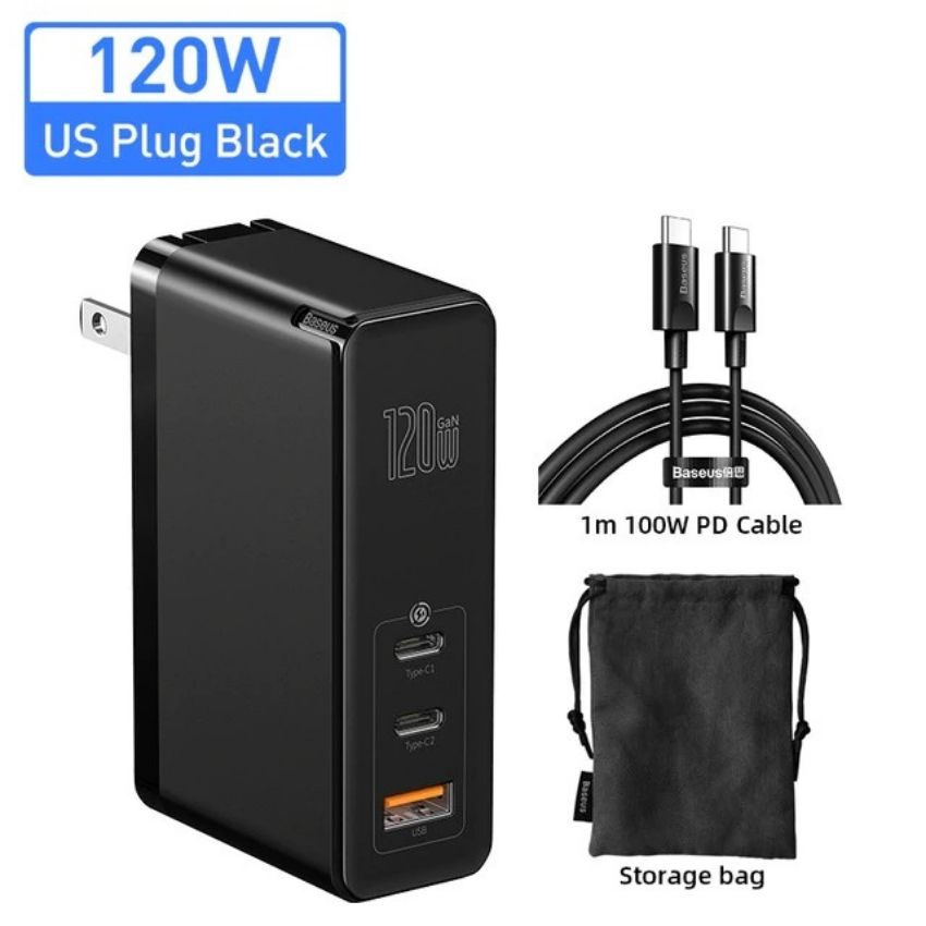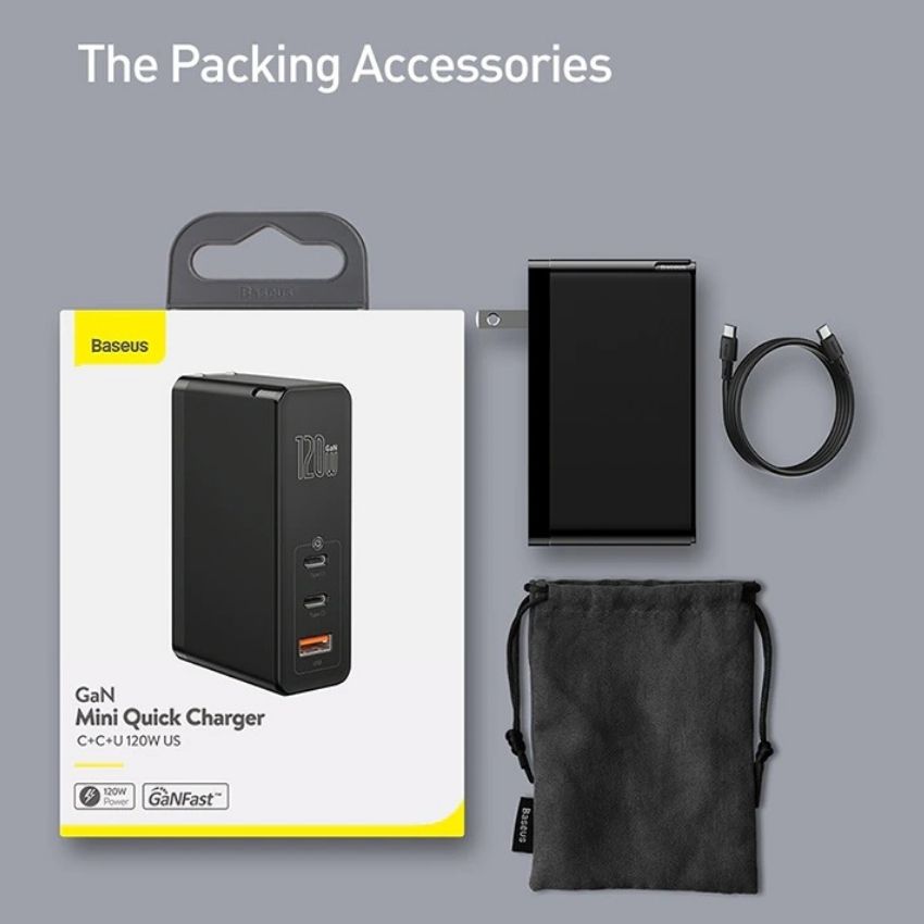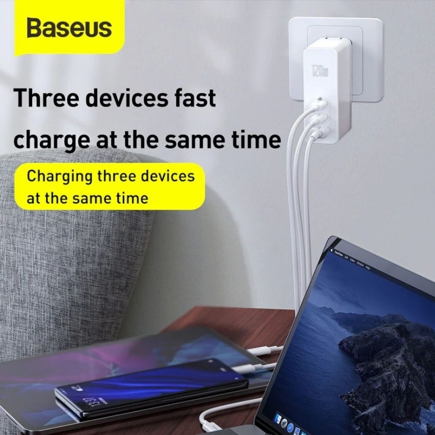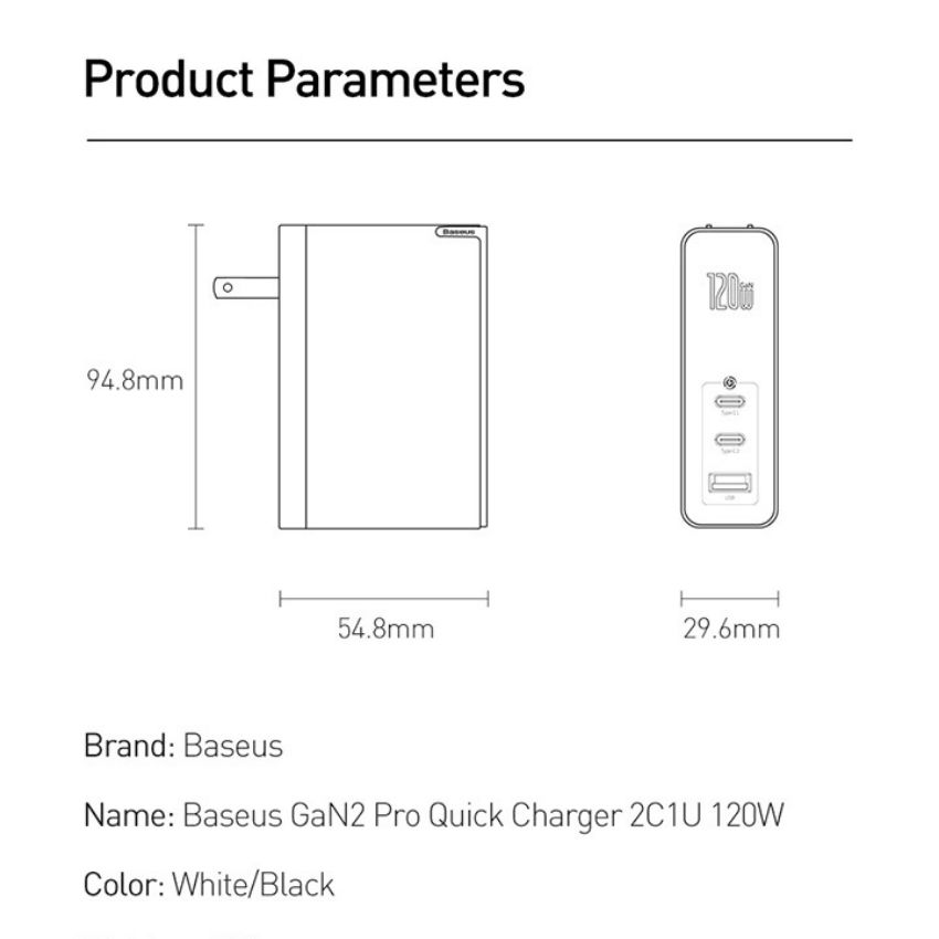 Giới thiệu Bộ sạc nhanh đa năng Baseus GaN2 Pro Quick Charger 120W dùng cho Smartphone/ Tablet/ Macbook / Laptop (C+C+A, With C to C Cable, E-mark Chip)