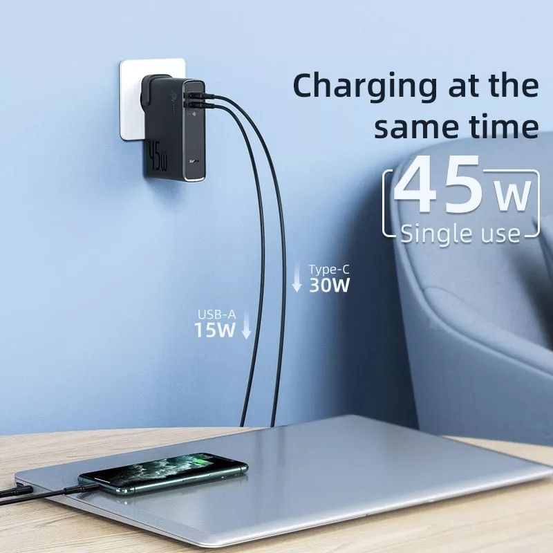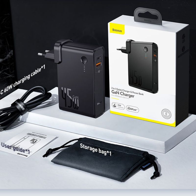Hình ảnh chi tiết Củ sạc nhanh kiêm pin sạc dự phòng Baseus GaN Power Station 45W 2 in 1 PD/QC3.0 (10000mAh, Type C/ USB Quick Charge, Travel Charger& Powerbank)