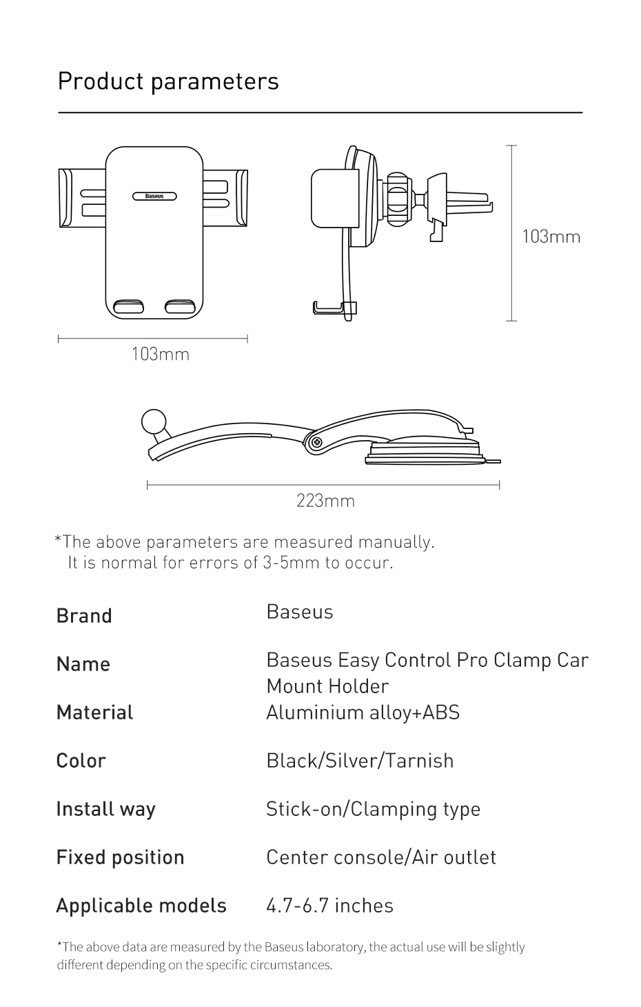 - Baseus Easy Control Pro Phù hợp với tất cả các dòng điện thoại smartphone hiện nay từ kích thước 4.7 đến 6.7inch