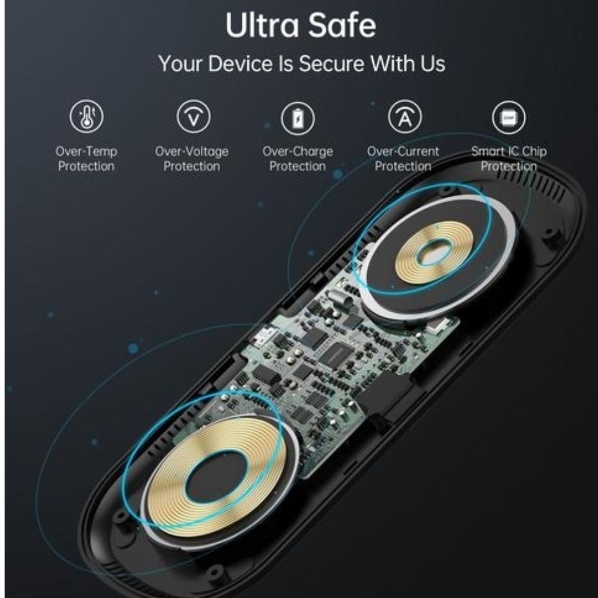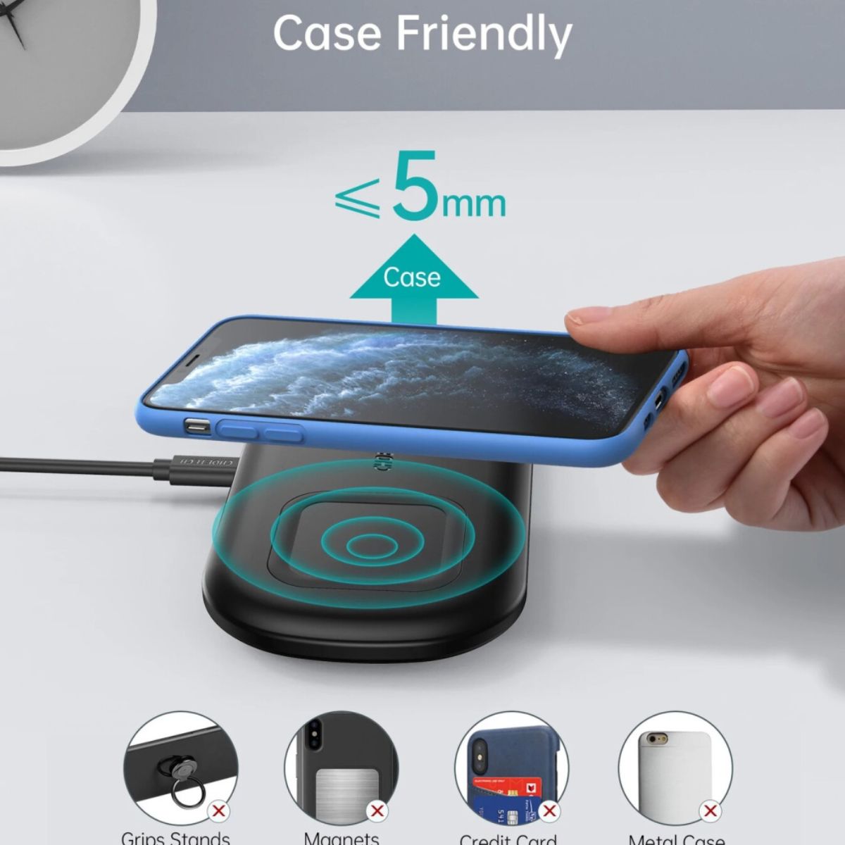 – Ưu điểm nổi bật nhất của Choetech T570 là khả năng nạp năng lượng đồng thời cho nhiều thiết bị cùng lúc. Bạn có thể đặt smartphone lên một bên đế sạc và smartwatch ở bên còn lại, thiết bị sẽ tự hiệu chỉnh dòng điện để đạt được tốc độ sạc nhanh tối ưu nhất mà không cần thực hiện thao tác sử dụng phức tạp nào.