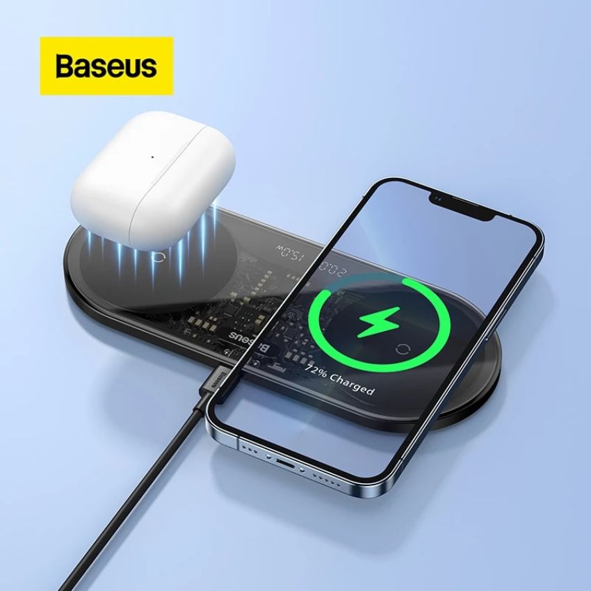 - Đế sạc không dây đa năng Baseus digital led display 2in1 Wireless Charger 20W được thiết kế chuyên dùng để sạc pin không dây tốc độ cao cho Smartphone Android/ iPhone và Apple Airpods.
