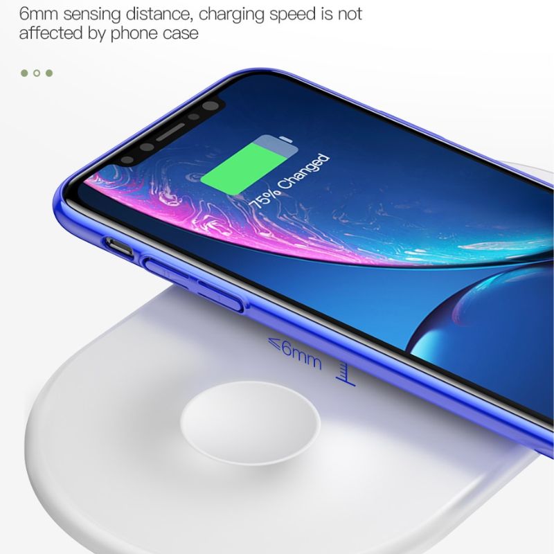 Khả năng nhận diện thiết bị cực nhanh, chỉ cần đưa điện thoại lên là tự động sạc pin. Bộ sạc có thể sạc cùng lúc 2 thiết bị là smartphone và Apple Watch. Có thể sạc ngay cả khi điện thoại đang sử dụng ốp lưng hoặc bao da, chỉ cần đảm bảo độ dày của chúng không quá 8 mm.