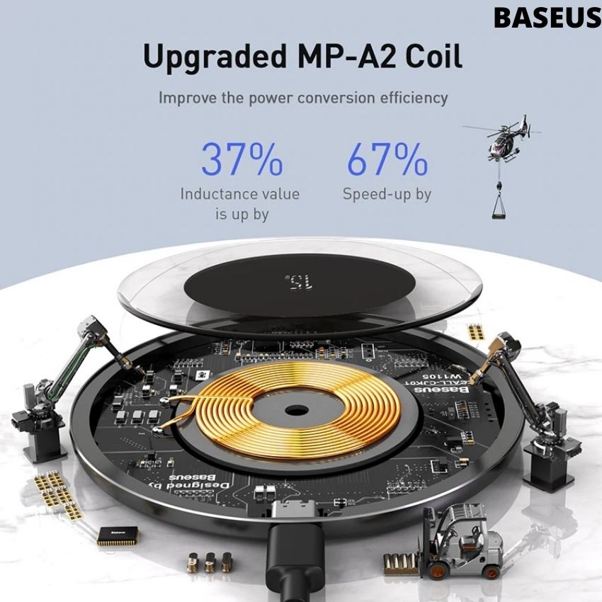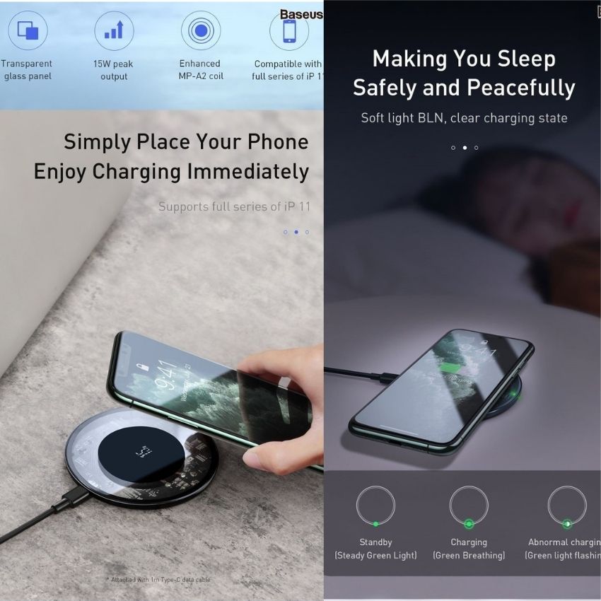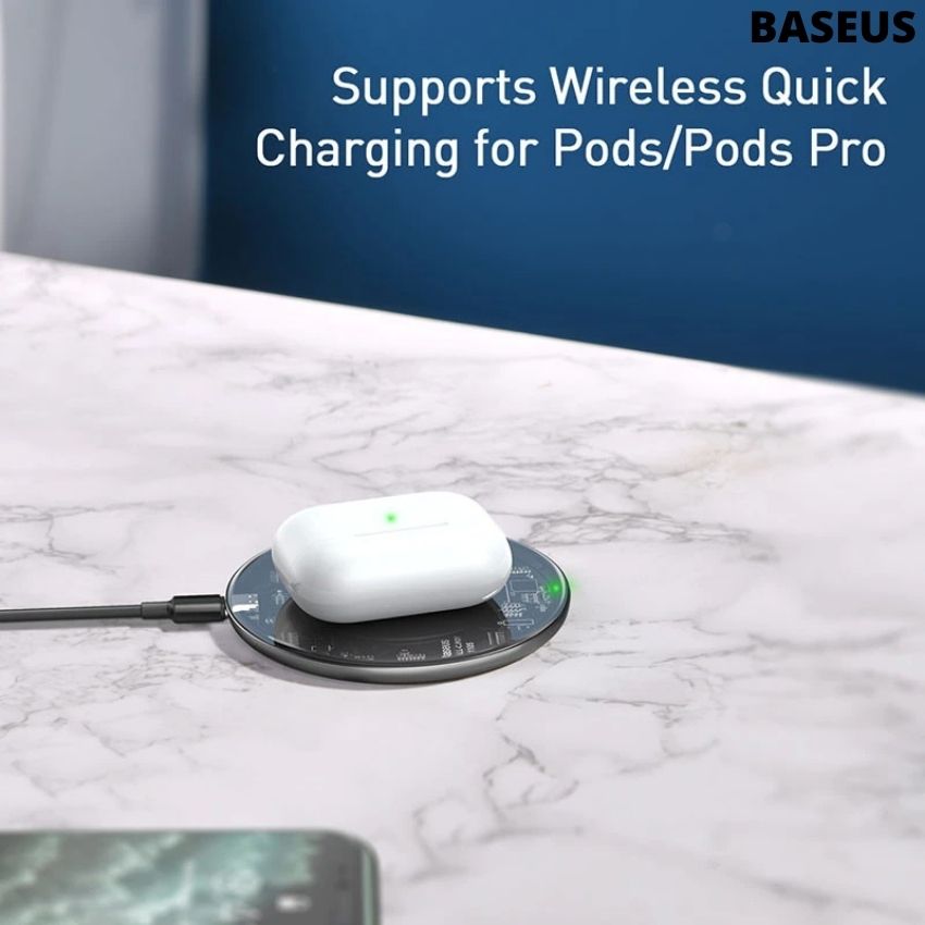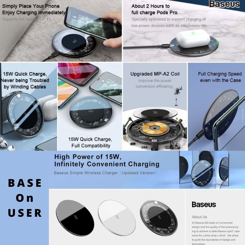 Hình ảnh sản phẩm Đế sạc không dây siêu nhanh siêu mỏng an toàn 15W cho Iphone, Samsung, Xiaomi, Huawei, 15W Baseus Simple Wireless Charger updated Version WXJK
