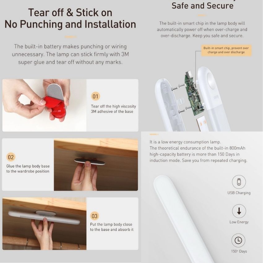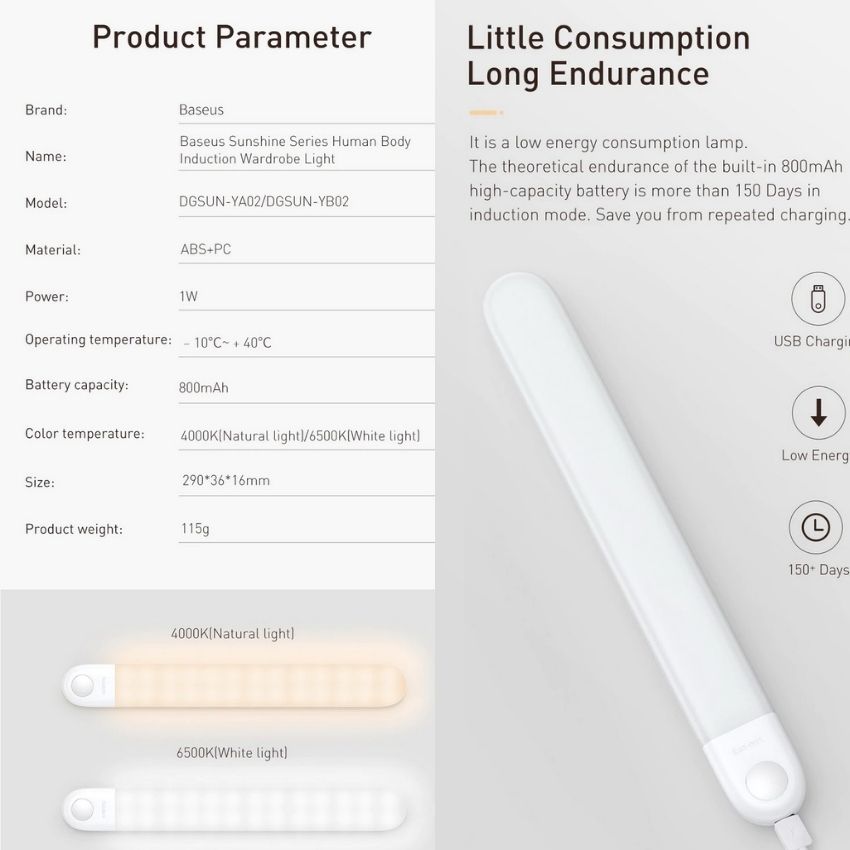 Giới thiệu Đèn cảm ứng chuyển động thông minh Baseus Sunshine Series - WARDROBE Edition (800mAh, Human body Induction/ PIR Intelligent Motion Sensor LED Nightlight)