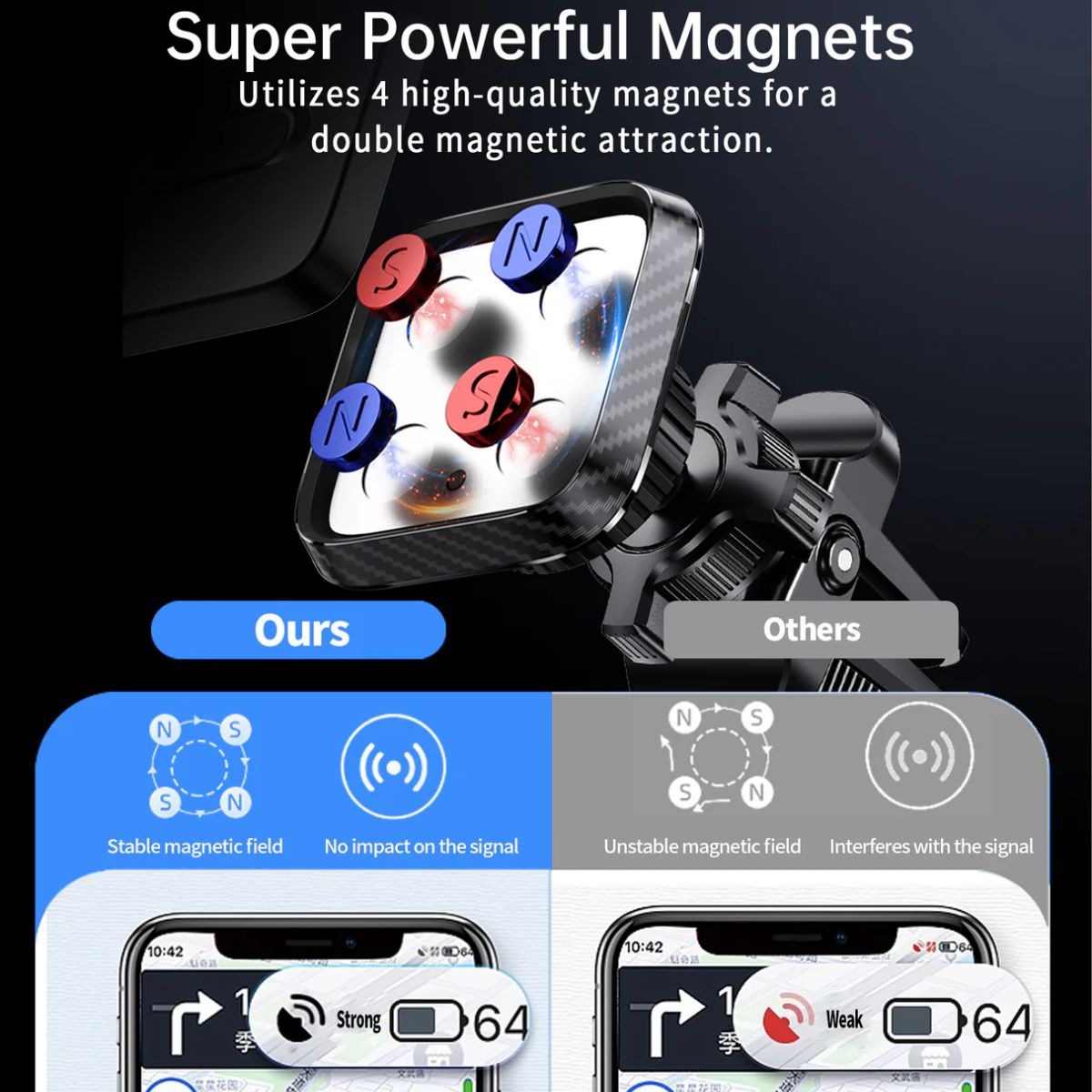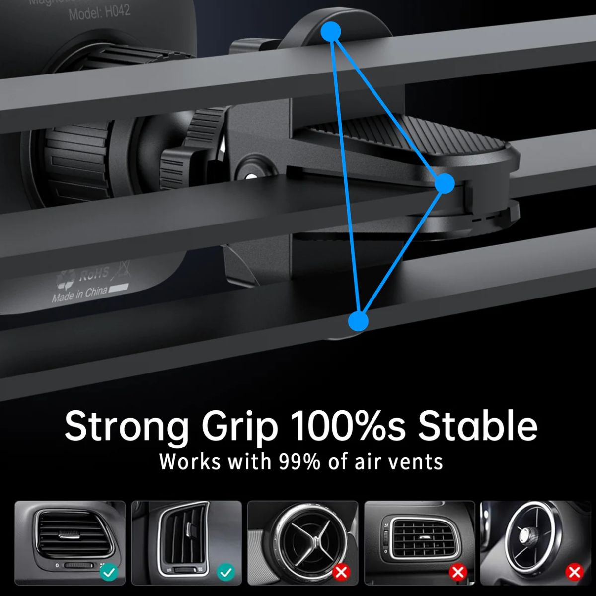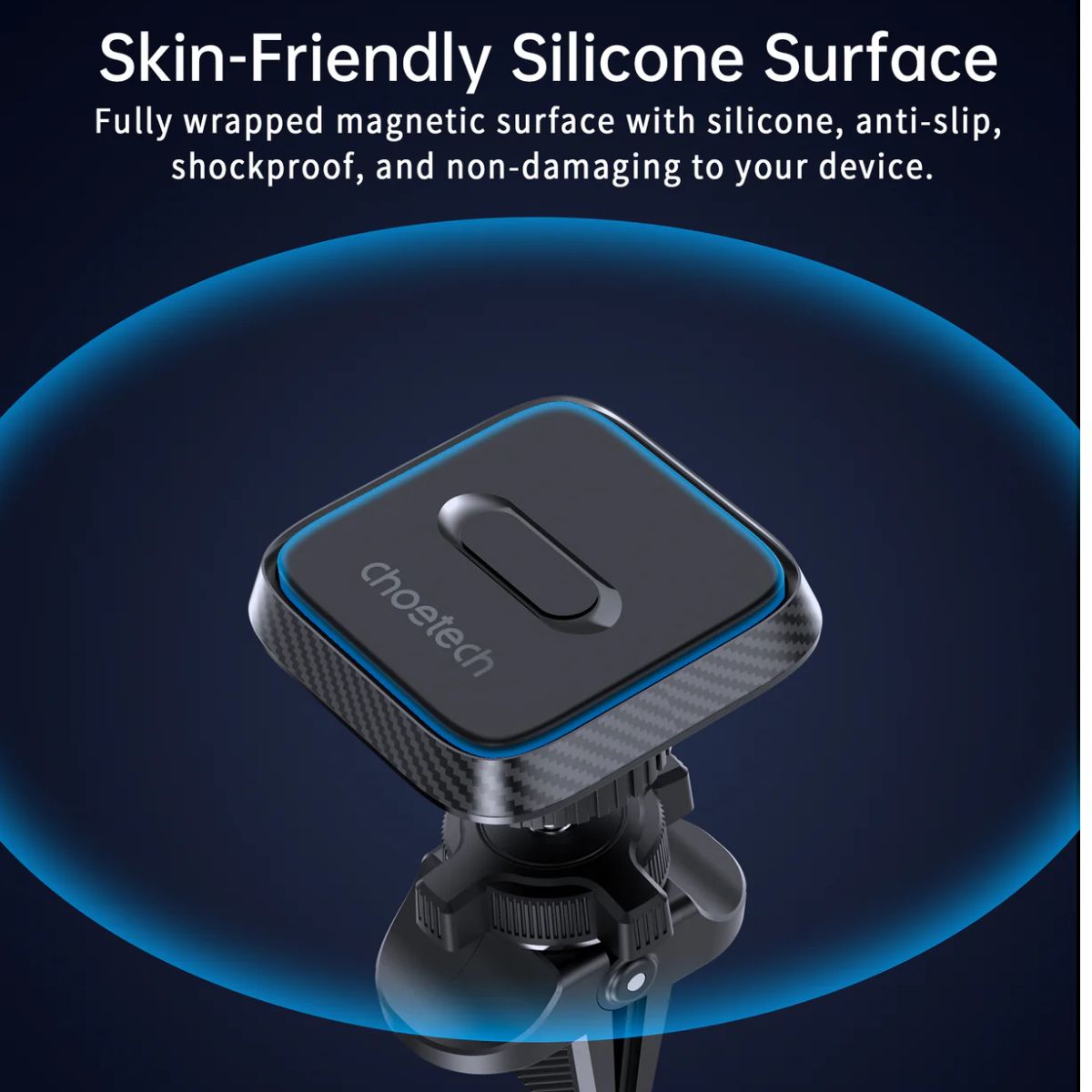 – Điểm nổi bật nhất của Choetech H042 chính là “Magnetic” (nam châm từ tính) mạnh mẽ, giúp giữ chắc chắn điện thoại của bạn mà không cần các thao tác kẹp hoặc gắn phức tạp. Với lực hút từ tính mạnh, giá đỡ có thể cố định điện thoại của bạn ở vị trí an toàn, ngay cả khi xe đi qua những đoạn đường gồ ghề hoặc vào cua. Đặc biệt, giá đỡ tương thích với tất cả các loại điện thoại có kích thước khác nhau, từ iPhone đến Samsung, từ dòng điện thoại Android đến các thiết bị khác.