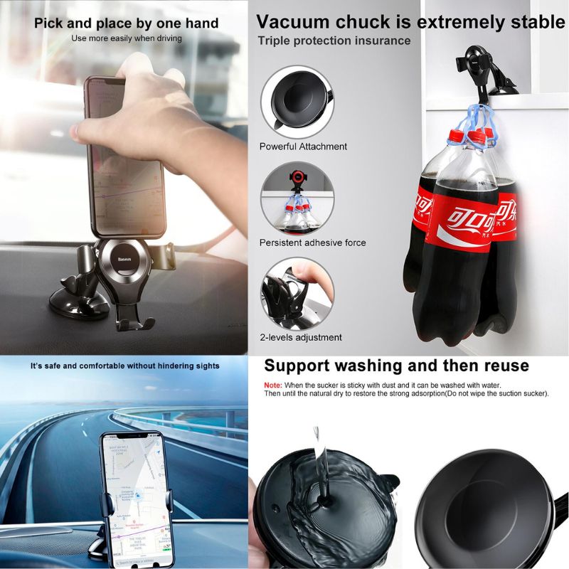 Tính năng sản phẩm Giá đỡ điện thoại hít chân không trên xe hơi SUYL-XP Baseus Osculum Type Gravity Car Mount