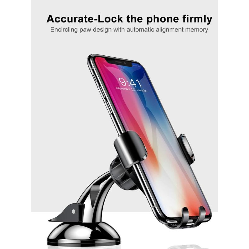 - Đế giá đỡ được thiết kế dạng chuck (hút chân không) giúp dễ dàng bám chắc vào bề mặt táp lô xe hoặc kính . Khi không sử dụng có thể tháo ra dễ dàng , không làm dơ bẩn xe.