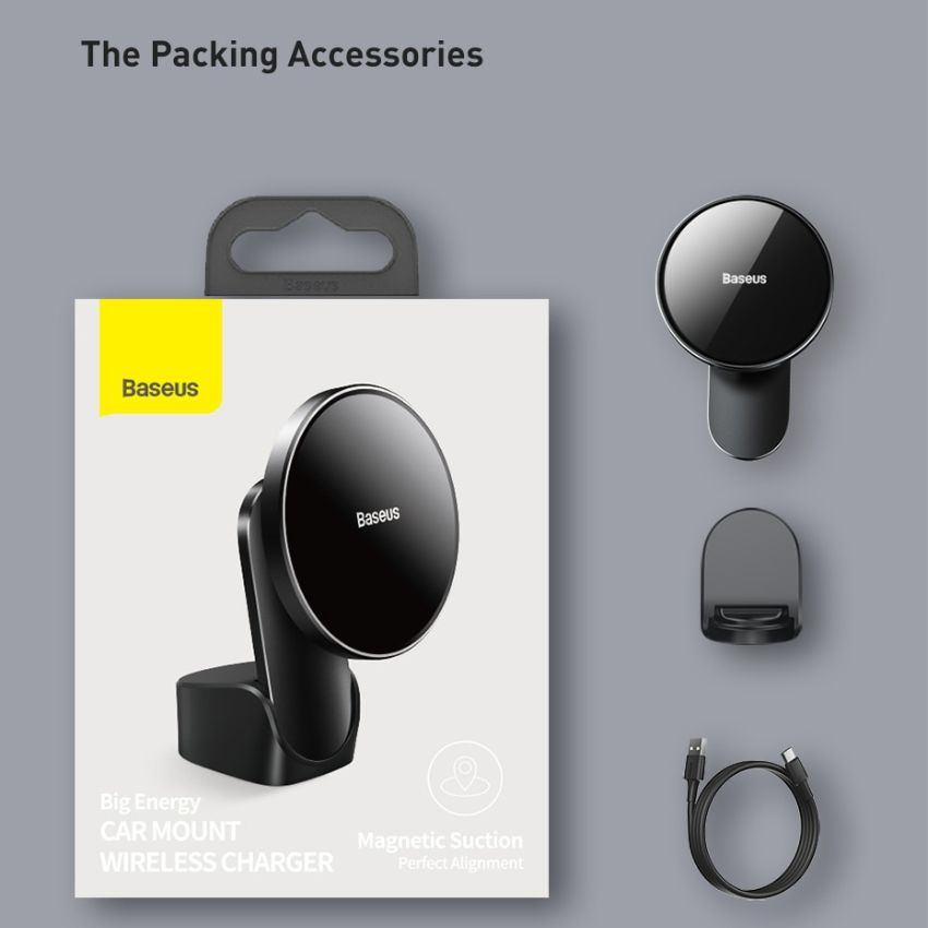 Hình ảnh chi tiết Giá đỡ điện thoại hít nam châm kiêm Sạc không dây dùng trên xe ô tô WXJN-01 Baseus Big Energy Car Mount Wireless Charger 15W