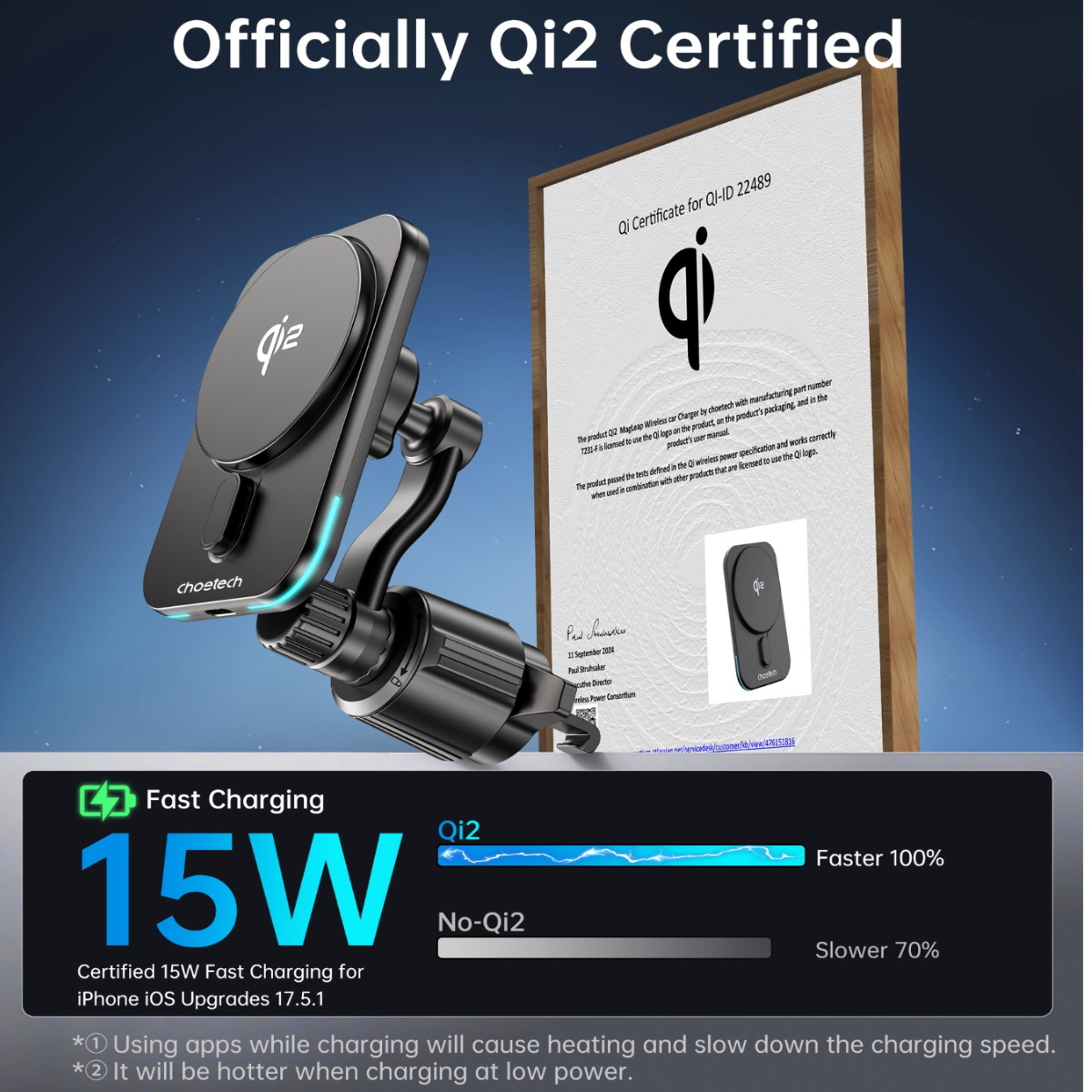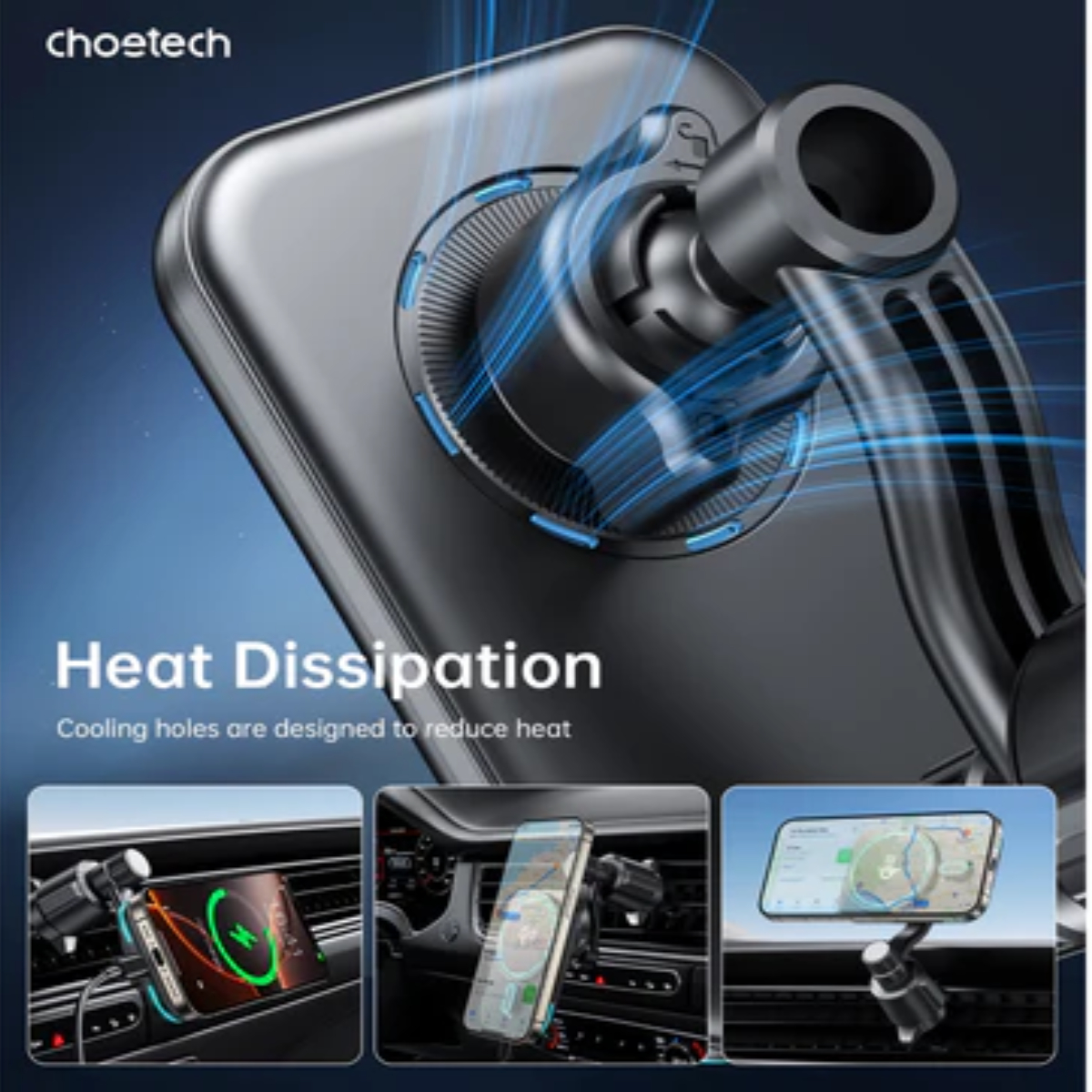 Hình ảnh Giá đỡ sạc không dây trên ô tô Choetech T231 công suất 15w chuẩn Qi2 xoay 360 độ có tản nhiệt (Hàng chính hãng)