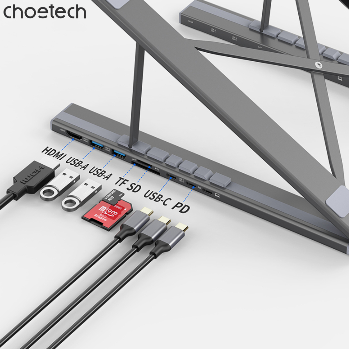 Giới thiệu giá đỡ tích hợp hub chuyển đổi 7 in 1 Choetech M48 đa năng (Hàng chính hãng)
