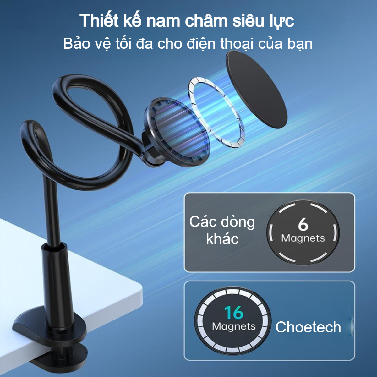 Hình ảnh Kẹp điện thoại hít nam châm Choetech H049 thân uốn dẻo linh hoạt và xoay 360 độ (Hàng chính hãng)