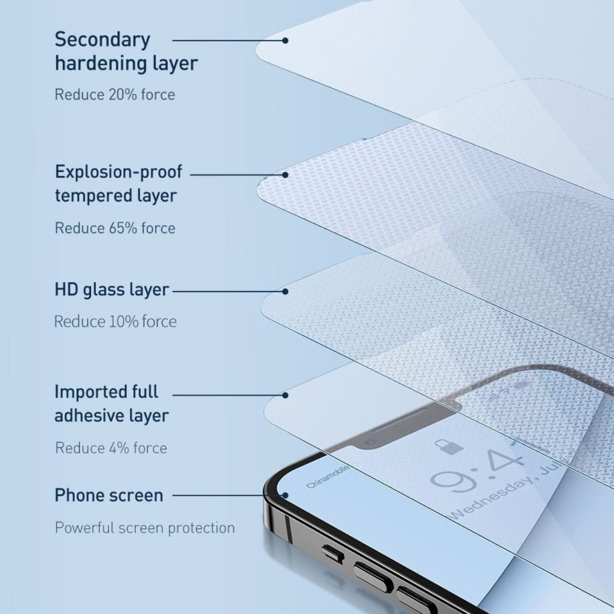 - Được nâng cấp gấp nhiều lần so với các mẫu cường lực trước đây,Kính cường lực 3D chống trầy,siêu bền Baseus 0.3mm Full-glass Tempered Glass Film cho IPhone được cấu trúc 6 lớp siêu bền.
