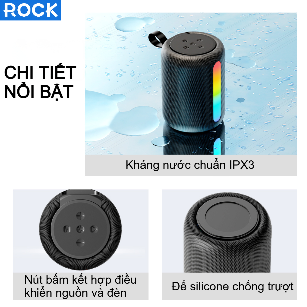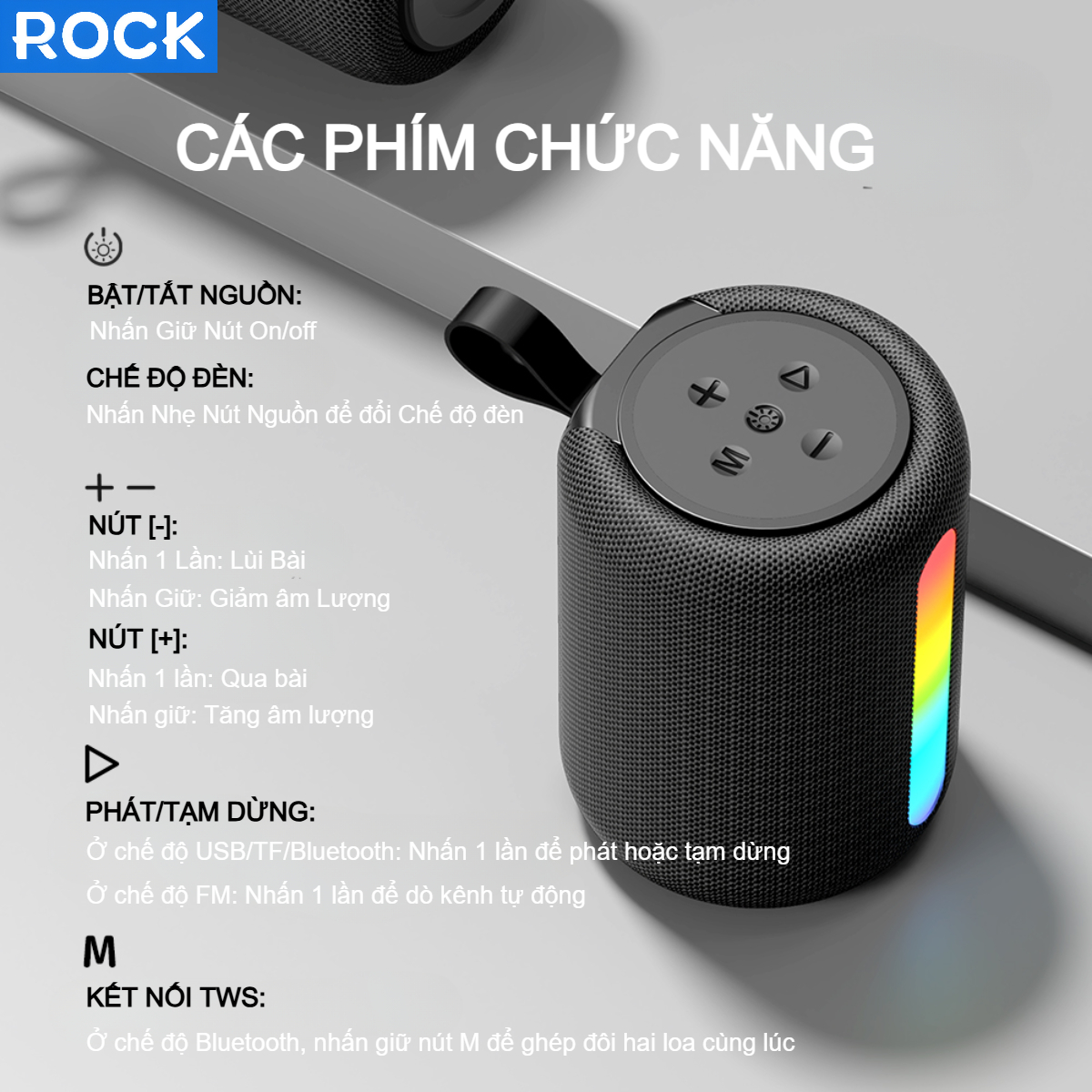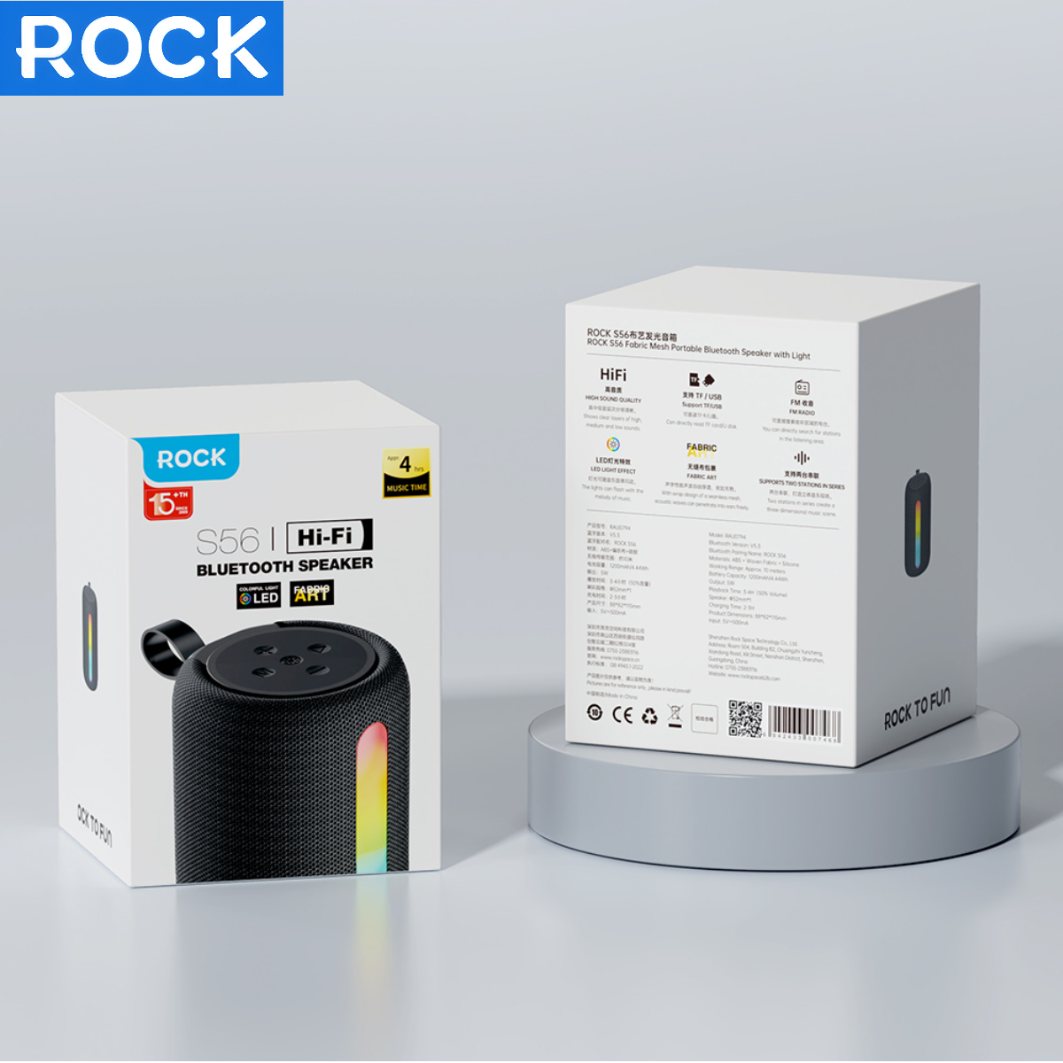 Loa bluetooth di động ROCK S56 là lựa chọn hoàn hảo cho những ai yêu thích âm nhạc và muốn đồng hành cùng âm thanh sống động ở bất cứ đâu. Thiết kế nhỏ gọn, bọc vải lưới sang trọng cùng hiệu ứng đèn LED nổi bật giúp ROCK S56 trở thành điểm nhấn trong mọi không gian, từ phòng ngủ, góc làm việc cho đến những buổi dã ngoại ngoài trời.