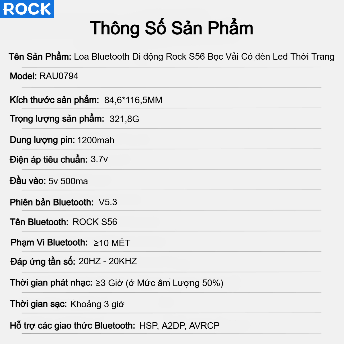 Giới thiệu Loa bluetooth di động Rock S56 bọc vải có đèn Led thời trang (Hàng chính hãng)