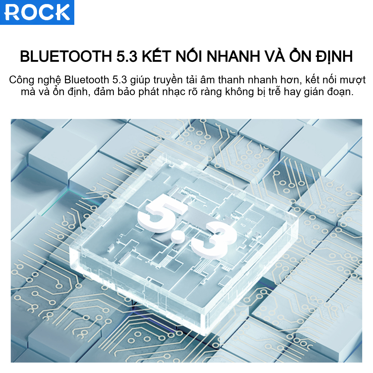 Nhờ trang bị Bluetooth 5.3, loa ROCK S56 kết nối nhanh hơn, ổn định hơn và tiết kiệm năng lượng tốt hơn so với các phiên bản cũ. Tên kết nối ROCK S56 giúp người dùng dễ dàng nhận diện. Phạm vi hoạt động lên đến 10 mét, thoải mái mang theo loa trong phòng mà không lo gián đoạn tín hiệu.