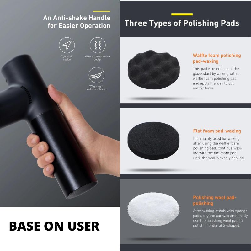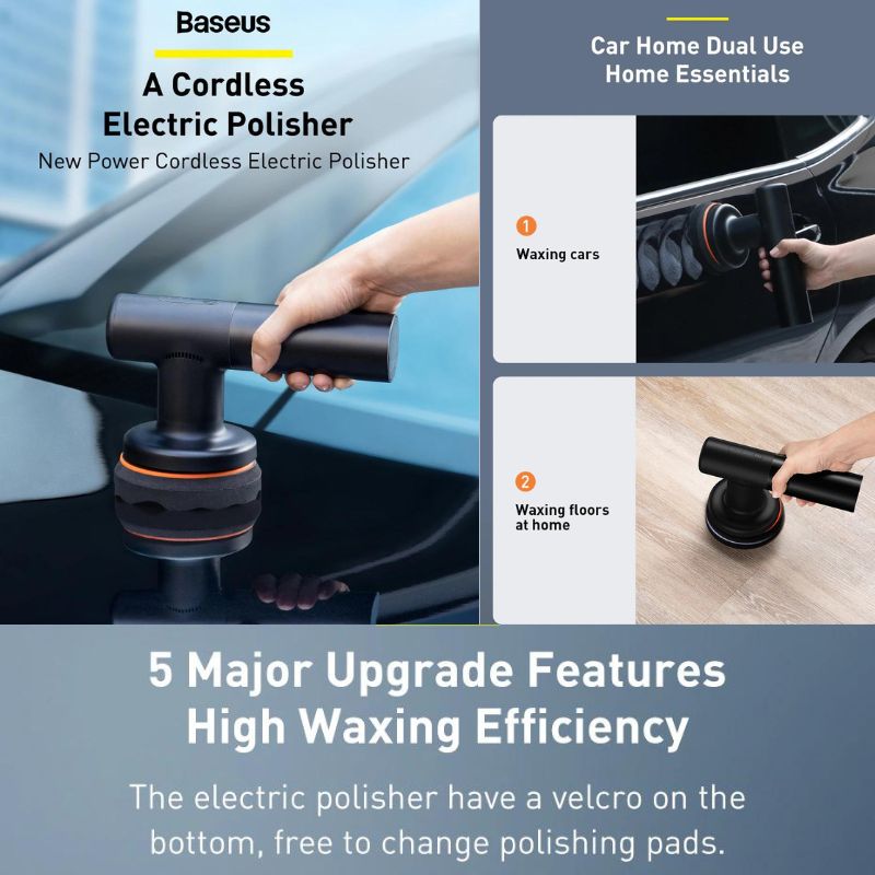Máy đánh bóng Baseus New Power là thiết bị được sản xuất chuyên dụng để đánh bóng bề mặt xe hơi, nệm, tẩy lông, dàn áo sẽ đẹp và bóng nhoáng hơn Baseus New power sử dụng khóa dán dễ dàng thay đổi miếng đệm nên sử dụng nhiều chức năng giúp tăng hiệu quả làm việc.